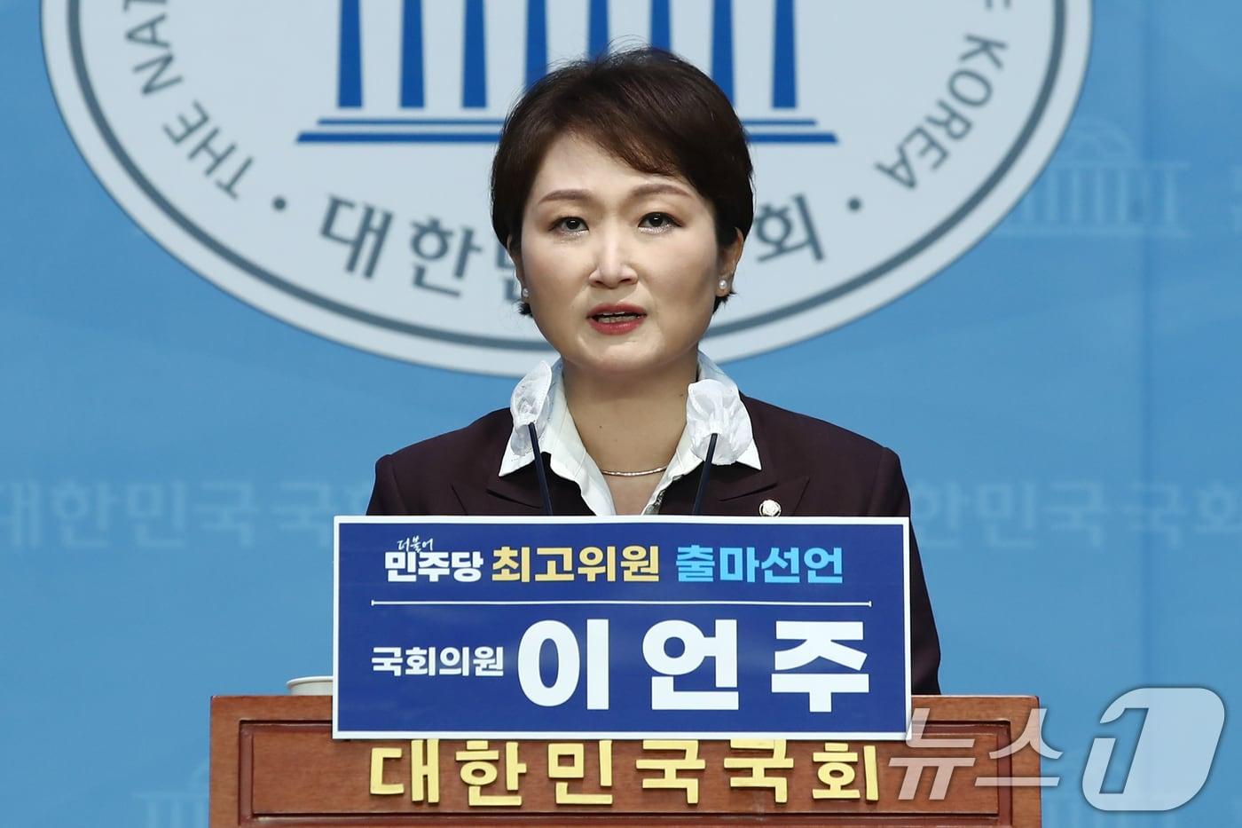 이언주 더불어민주당 의원이 7일 오후 서울 여의도 국회 소통관에서 8.18전당대회 최고위원 출마를 선언하고 있다. 2024.7.7/뉴스1 ⓒ News1 이광호 기자
