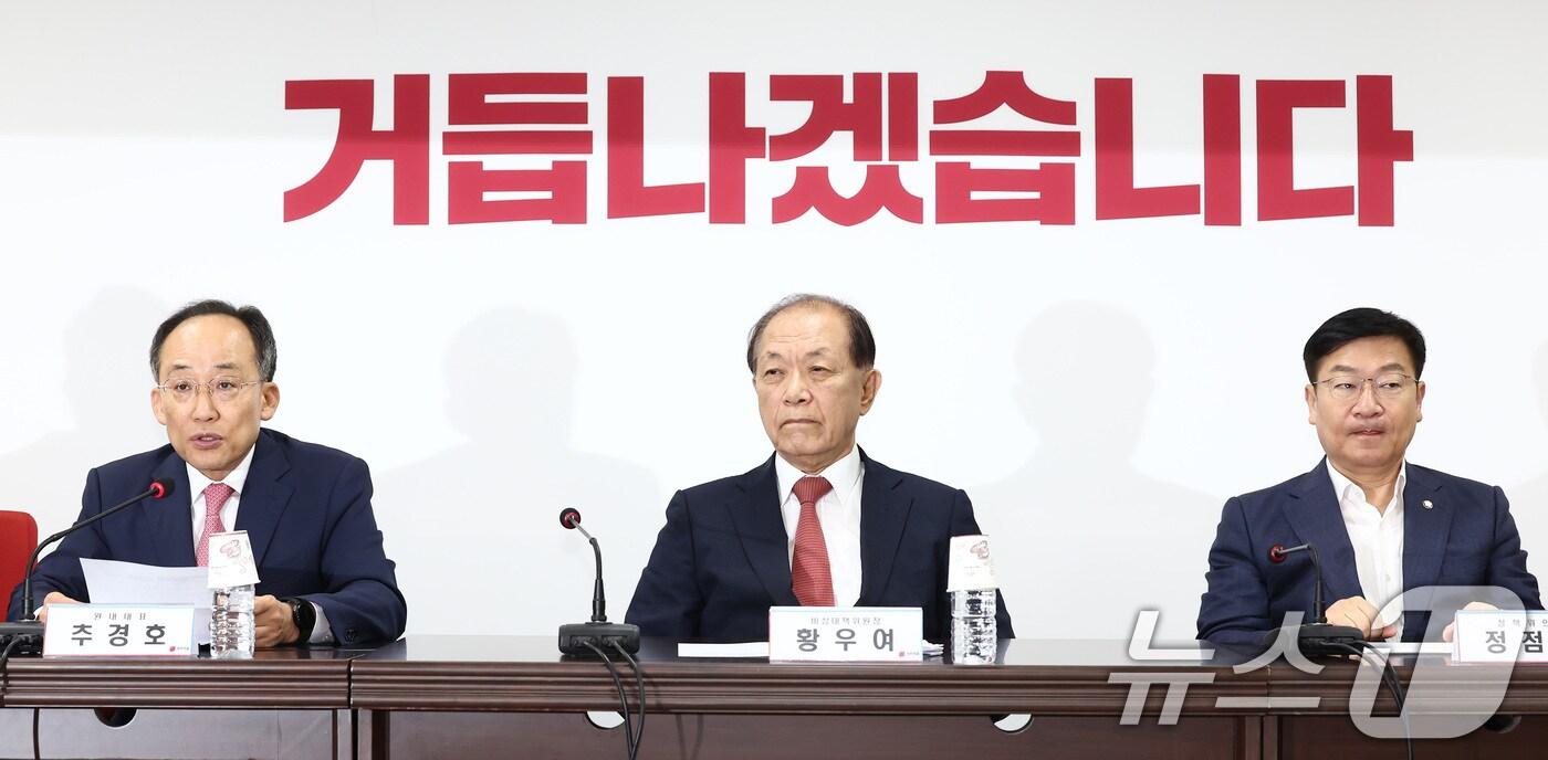 황우여 "명백한 위헌·위법" 유상범 "정청래 자의적 해석"추경호 "이재명 증인으로 불러야" 엄태영 "李 총통시대"추경호 국민의힘 원내대표가 11일 오전 서울 여의도 국민의힘 중앙당사에서 열린 비상대책위원회의에서 발언하고 있다. 왼쪽부터 추 원내대표, 황우여 비상대책위원장, 정점식 정책위의장. 2024.7.11/뉴스1 ⓒ News1 김민지 기자관련 키워드국민의힘더불어민주당민주당이재명윤석열탄핵탄핵청문회이재명연임조현기 기자 국힘 "李대통령, 나토를 비토 마라…외교 참사 안 돼"민주 지지율 45% '역대 최고'…'내홍' 국힘 23% 4년만에 최저신윤하 기자 구룡마을 화재 8시간 28분만에 '완진'…이재민 약 190명 발생(종합4보)구룡마을 화재 6시간 30분만에 '초진'…주민 258명 대피(종합3보)관련 기사與, 이혜훈 '단독 청문회' 갈까…정태호 "野 임이자 위원장과 일단 협의"'내란+김건희+해병대원' 2차 특검법 통과…野 "지선용 내란몰이"(종합)민주당 특위 '대전·충남 통합 특별법' 특례 229개…"2월 중 통과 목표”李대통령 "여야, 국익·균형발전 힘 모아야"…국힘 회동 불참(종합)'내란+김건희+해병대원' 2차 특검법 국회 통과…6개월 251명 투입