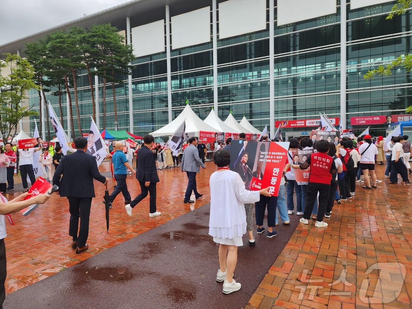 "후보 응원하려 10시부터 대기"…이색 응원 피켓 눈길국민의힘 당대표 후보자 지지자들이 23일 경기도 고양시 킨텍스 앞에서 응원전을 펼치고 있다뉴스1 ⓒ News1 박기현 기자서상혁 기자 여권은 지선 앞 외연확장 외치는데…한동훈 '당게'에 국힘 내홍송언석 "3특검 특활비만 40억…'특검은 新사업' 생각해 덤벼드나"박기현 기자 국힘 "KT 조사 원점 재검토하라…현 보상안 현저히 미흡"이혜훈 즉각 제명 '자성론'…국힘 일각 "민주 자중지란 묻혀버렸다"