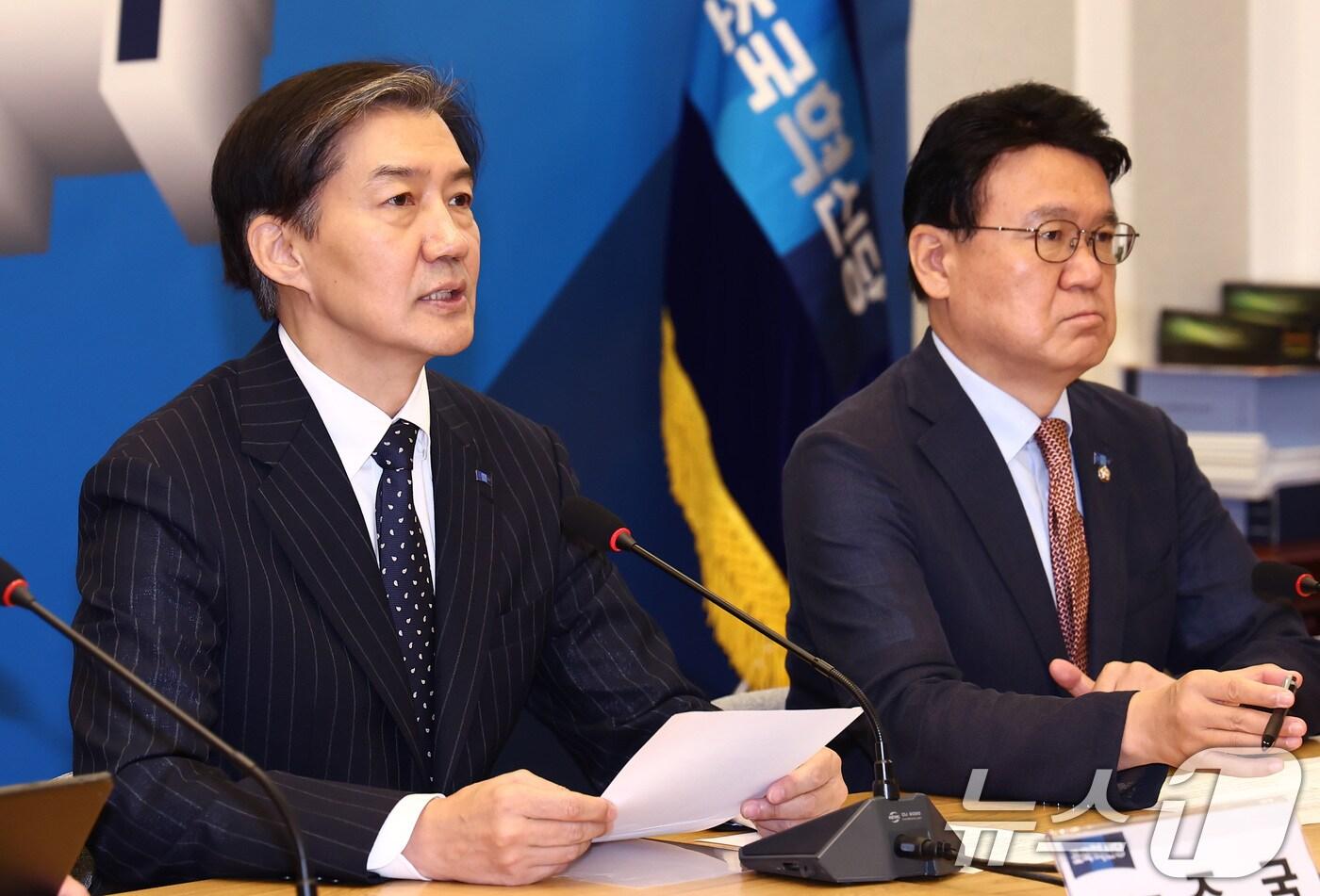 "尹, 탄생해선 안 될 정권…탄핵 사유 구체화해 조기종식""20% 이상 지지율 목표…검찰개혁·교섭단체 완화 시급"조국 조국혁신당 대표가 2일 오전 서울 여의도 국회에서 열린 최고위원회의에서 모두 발언을 하고 있다. 오른쪽은 황운하 원내대표. 2024.8.2/뉴스1 ⓒ News1 김민지 기자관련 키워드조국혁신당조국황운하임윤지 기자 민주, 1인1표+예비경선 당원 비율 확대…정청래 연임 포석?尹 '체포방해' 1심 징역 5년…범여권 "턱없이 부족, 유감"관련 기사범여권 강경파, 중수청 법안에 "특수부 부활, 수사권 인정한 꼴" (종합)혁신당, 공소청·중수청법에 "제2의 검찰청…원점 재검토"범여권 강경파, 중수청 법안에 "특수부 부활, 수사권 인정한 꼴"범여권 의원들 "보완수사권 완전제거 檢개혁법 설 전에 처리해야"국민의힘 대전시당 “황운하, 공천헌금 운운…무책임한 행태”