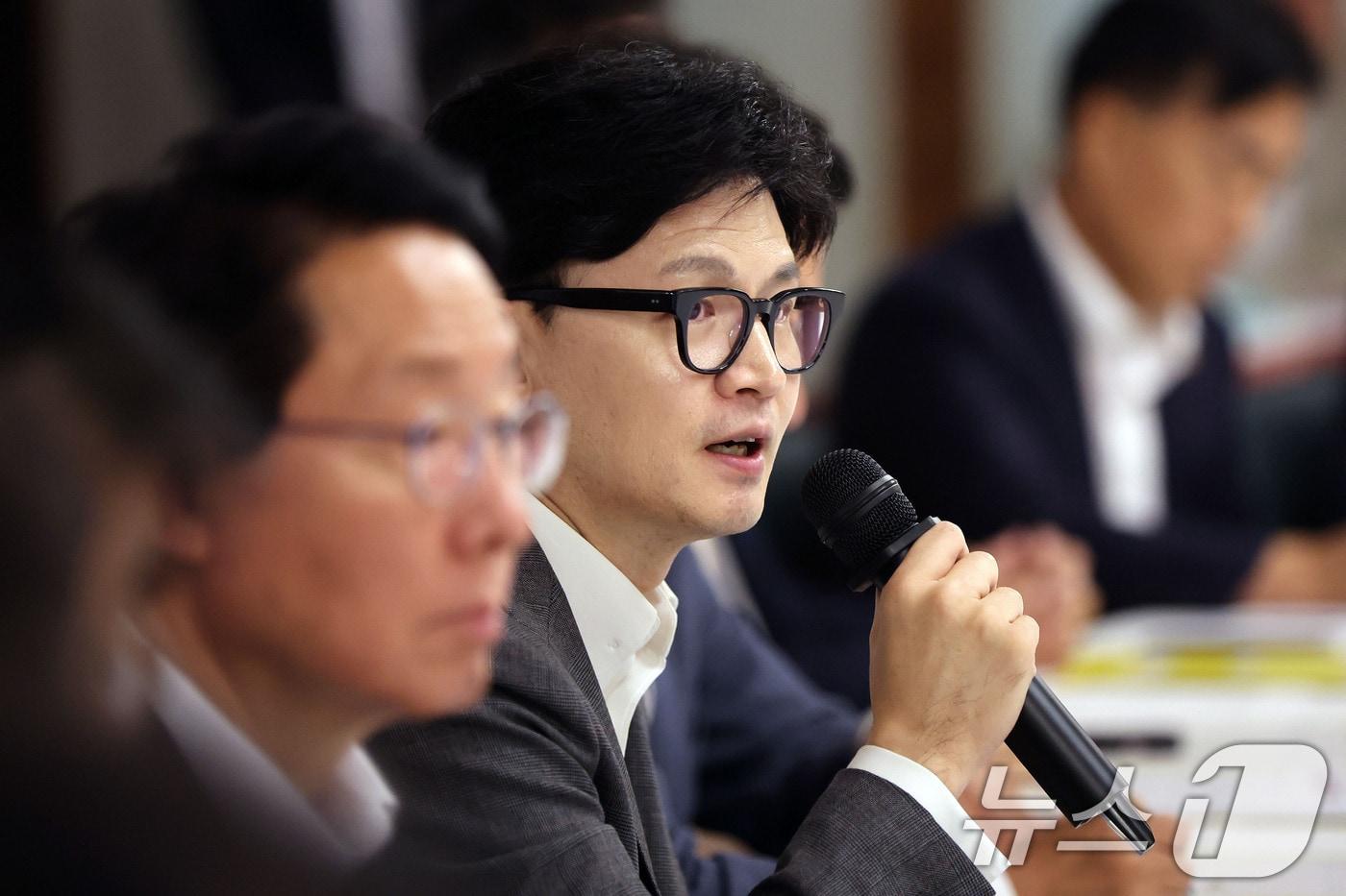 한동훈 국민의힘 대표가 25일 오후 서울 종로구 총리공관에서 열린 제20차 고위당정협의회에서 모두발언을 하고 있다. 이날 고위당정협의회에서는 추석 민생안정 대책, 전기차 화재 안전관리 대책, 쌀값 및 한우가격 안정 대책을 논의했다. (공동취재)2024.8.25/뉴스1 ⓒ News1 박세연 기자