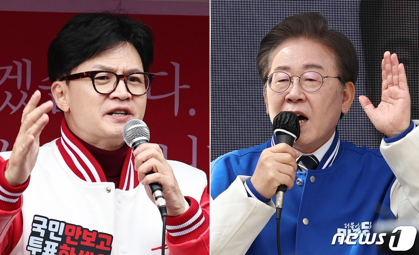국힘, 2대2 노리지만 지지율 추락에 고심민주, 호남서 한곳이라도 잃으면 이재명 흔들…혁신, 영광군 노려이재명 더불어민주당 대표(오른쪽)와 한동훈 국민의힘 비상대책위원장이 30일 각각 서울과 인천에서 주말 지원유세를 하고 있다. 2024.3.30/뉴스1 ⓒ News1 구윤성 기자관련 키워드한동훈이재명관련 기사장동혁, 내전 중 쌍특검 단식 이틀차…친한계 "국면전환용"정청래, 장동혁 단식에 "밥 안 먹으면 배고파"…與, 한목소리 비판전재수 부산시장 출마하면 지역구는 누가?윤건영 "장동혁의 이이제이…한동훈 제거 위해 단식, 이준석과 손"[인터뷰 전문] 경민정 "한동훈, 가족의 비방글 방치…국민과 공감능력 떨어져"