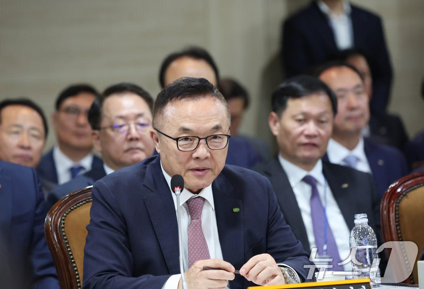 황주호 한국수력원자력 사장이 14일 전남 나주빛가람혁신도시 한국전력공사 본사에서 열린 산업통산자원중소벤처기업위원회 국정감사에서 의원들 질의에 답변하고 있다. 2024.10.14/뉴스1 ⓒ News1 김태성 기자