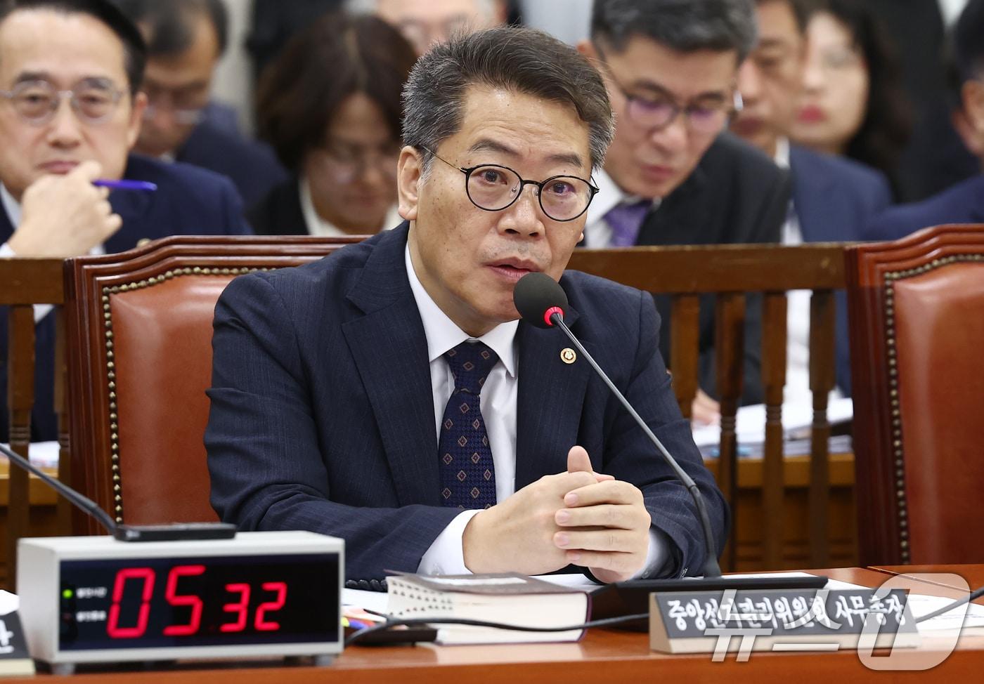 "당직자 핸드폰 압수하고 출입 통제"김용빈 중앙선거관리위원회 사무총장 서울 여의도 국회 행정안전위원회에서 열린 행정안전부·중앙선거관리위원회·진실화해를위한과거사정리위원회·경찰청·소방청 등에 대한 종합 국정감사에서 의원 질의에 답변하고 있다. 2024.10.25/뉴스1 ⓒ News1 김민지 기자관련 키워드선관위이비슬 기자 재수감 성범죄자 신상정보 공개기간 연장…법 개정 추진서울시, 2026 서울국제정원박람회 '작가정원' 5개 확정관련 기사'40년 집권' 우간다 대통령 연임 앞두고…야당 후보 "군경 자택 급습에 탈출"순천대, 통합 재투표 초반 1시간 정지처리…3차 투표 가나?'김병기·강선우' 의혹 수사 속도 내는 경찰…20일 강선우 소환[일지] 12·3 계엄 선포부터 尹 '체포 방해' 1심 징역 5년 선고까지"선거구 확정 전 광주전남특별시장 적합도 여론조사 가능"(종합)