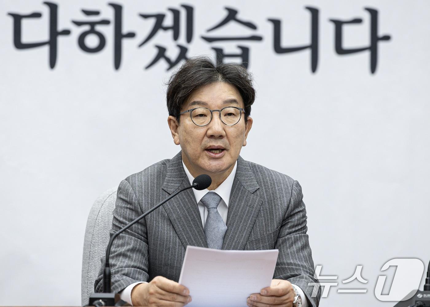 "민생경제 안정위해 예산 조기집행 방안 준비해야"권성동 국민의힘 대표 권한대행 겸 원내대표가 19일 오전 서울 여의도 국회에서 열린 원내대책회의에서 발언을 하고 있다. 2024.12.19/뉴스1 ⓒ News1 이재명 기자