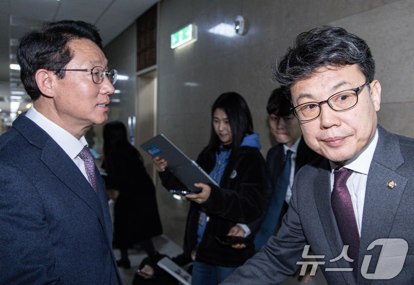 김상훈 "경사노위 논의 도출되지 않으면 그땐 국회가 나서야"김상훈 국민의힘 정책위의장(왼쪽)과 진성준 더불어민주당 정책위의장이 22일 오전 서울 여의도 국회에서 국정협의체 실무 협의를 마친 후 악수하고 있다. 2025.1.22/뉴스1 ⓒ News1 이재명 기자관련 키워드정년연장박기현 기자 60·70대도 등 돌렸다…국힘, 민주당 '대형악재'에도 지지율 하락'내란+김건희+해병대원' 2차 특검법 통과…野 "지선용 내란몰이"(종합)관련 기사기획차관 "인구위기 타개책 시급…정년연장·연금개혁 협력 필요"서울 시내버스 극적 타결…'통상임금' 갈등 불씨 여전[뉴스1 PICK]막판 합의 이룬 서울 시내버스 노사…첫차부터 정상 운행서울 버스, 15일 첫차부터 다시 달린다…임금 2.9% 인상 합의(종합)서울 시내버스 파업 철회…15일 첫차부터 정상운행·비상수송대책 해제