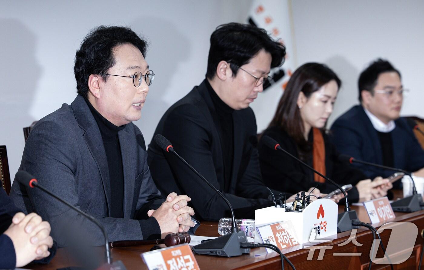 "이준석 말한 '조고각하' 사자성어 보며 스스로 반성"천하람 개혁신당 당대표 권한대행 겸 원내대표가 10일 오전 서울 여의도 국회에서 열린 최고위원회의에서 발언을 하고 있다. 2025.2.10/뉴스1 ⓒ News1 이재명 기자박소은 기자 국힘 과방위, 온라인 입틀막 철폐법·접속국가 표시법 당론 발의"지각생 퇴학시키나" 韓 제명, 의총서 우려…張 절차적 '명분 쌓기'