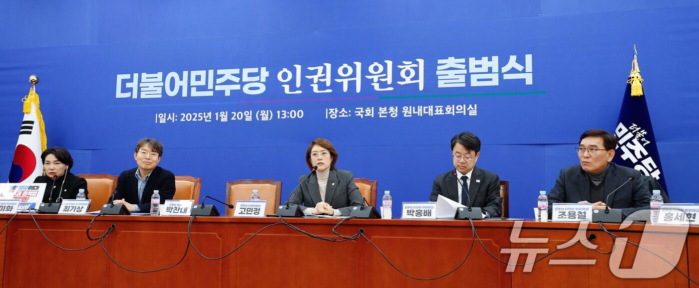 민주 인권위 "국민 인권 지켜야 할 인권위가 내란수괴 비호""헌재 두들겨 부숴야 한다는 김용원 위원 어떤 조치도 안해"고민정 더불어민주당 인권위원장이 20일 오후 서울 여의도 국회에서 열린 민주당 인권위원회 출범식에 참석해 모두 발언하고 있다. 2025.1.20/뉴스1 ⓒ News1 안은나 기자관련 키워드고민정안창호김용원윤석열탄핵국가인권위원회김일창 기자 '내란+김건희+해병대원' 2차 특검법 통과…野 "지선용 내란몰이"(종합)'내란+김건희+해병대원' 2차 특검법 국회 통과…6개월 251명 투입김지현 기자 李대통령, 지선 앞둔 올해 첫 내치 화두 '지방균형·국민통합' 꺼냈다李대통령 "아소 총리, 한일정상회담 日사회서 긍정 평가라 전해"관련 기사인권위, '尹 방어권 보장' 안건 회의 시작…지지자들 몰려 긴장감"尹 방어권 보장" "내란수괴 비호"…여야 의원들, 인권위 결집