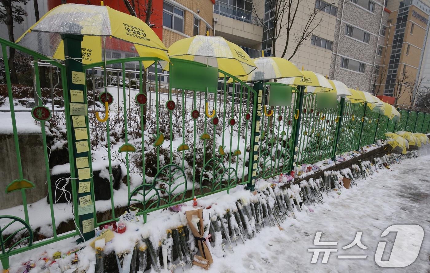 질환심의위 의무화·강제 업무배제·돌봄시스템 등 개선 추진12일 대전 초등학생 피살사건이 발생한 대전 서구의 한 초등학교 정문에 추모객들이 놓고 간 국화과 편지 위에 우산이 설치돼 있다. 2025.2.12/뉴스1 ⓒ News1 김기태 기자심언기 기자 [속보] 靑, 尹 체포방해 1심 징역 5년에 "법과 원칙따라 진행될 것"[속보] 李대통령, 21일 신년 기자회견…영빈관서 90분간 진행구진욱 기자 추울 땐 실내로! 올겨울 꼭 가야 할 무료 전시 7곳[서울in]서울 지하철 3호선 오금역 선로 연기…조치 완료 후 운행 재개