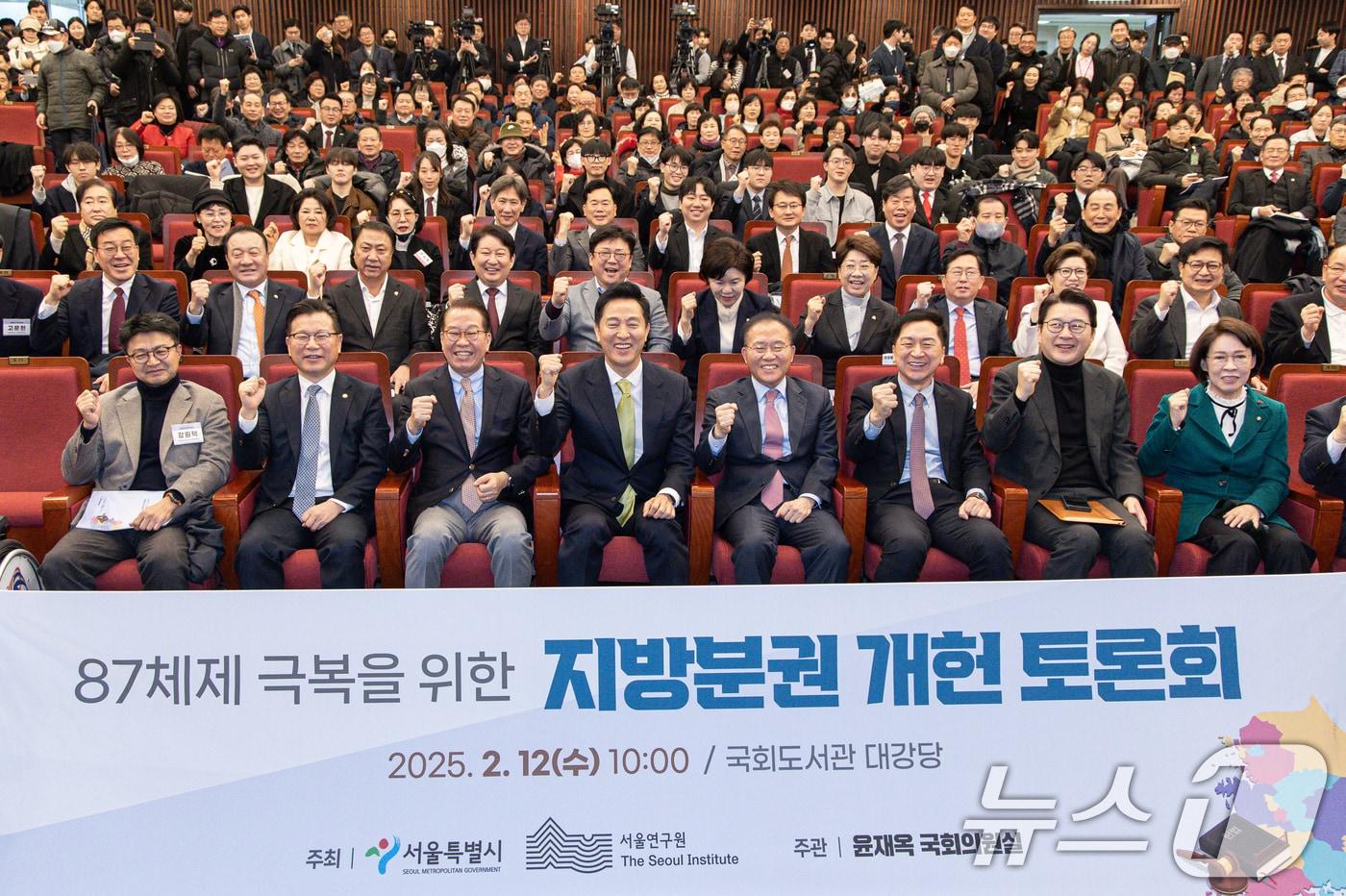 일부 여론조사에서 18~29세 與 지지도, 野 추월청년 맞춤형 연금개혁 추진…정책 현안에 2030 목소리 반영권영세 국민의힘 비상대책위원장과 오세훈 서울시장을 비롯한 참석자들이 12일 오전 서울 여의도 국회 도서관 대강당에서 서울특별시 ·서울연구원 주최로 열린 87체제 극복을 위한 지방분권 개헌 토론회에서 기념촬영을 하고 있다. 2025.2.12/뉴스1 ⓒ News1 이재명 기자박소은 기자 국힘 과방위, 온라인 입틀막 철폐법·접속국가 표시법 당론 발의"지각생 퇴학시키나" 韓 제명, 의총서 우려…張 절차적 '명분 쌓기'
