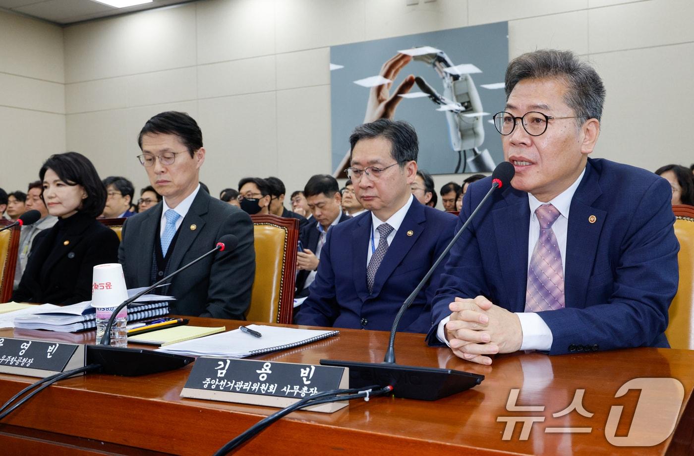 "부정선거 아닌 부실 관리…대응 방법 마땅찮아""선거 앞두고 방통위와 채널 가동해 문제 대응하겠다"김용빈 중앙선거관리위원회 사무총장이 5일 서울 여의도 국회에서 열린 제423회 국회(임시회) 제1차 과학기술정보방송통신위원회 전체회의에 출석해 현안 질의에 답하고 있다. 2025.3.5/뉴스1 ⓒ News1 안은나 기자관련 키워드과방위박소은 기자 국힘 과방위, 온라인 입틀막 철폐법·접속국가 표시법 당론 발의"지각생 퇴학시키나" 韓 제명, 의총서 우려…張 절차적 '명분 쌓기'김지현 기자 李대통령, 지선 앞둔 올해 첫 내치 화두 '지방균형·국민통합' 꺼냈다李대통령 "아소 총리, 한일정상회담 日사회서 긍정 평가라 전해"관련 기사국힘 과방위, 온라인 입틀막 철폐법·접속국가 표시법 당론 발의경찰 '국감 위증 혐의' 류희림 전 방심위원장 불구속 송치쿠팡 전방위 압박…새해에도 이어지는 유출 사태 '2라운드'로저스 쿠팡 대표 출국정지?…"고발 접수 후 사실관계부터 확인해야"송언석, 강선우·김병기 논란에 "與 공천헌금 수수 의혹 특검해야"