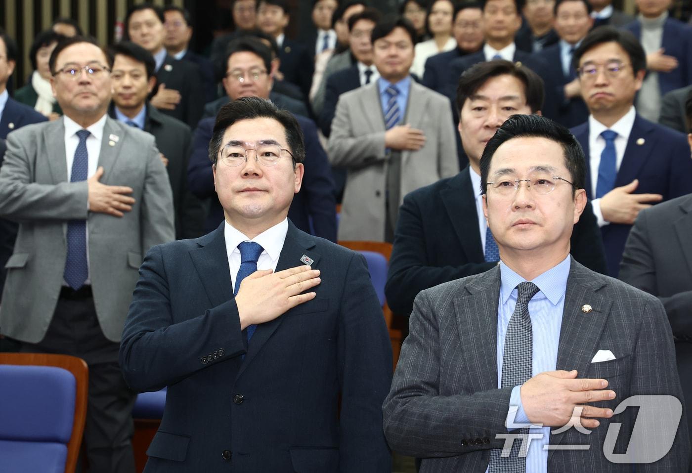 헌재, 尹 파면 결정 시 조기 대선 국면으로…5월 중순 쯤 대선 전망박찬대 더불어민주당 원내대표가 14일 오후 서울 여의도 국회에서 열린 의원총회에서 박성준 원내수석부대표 등 의원들과 국민의례를 하고 있다. 2025.2.14/뉴스1 ⓒ News1 김민지 기자관련 키워드민주당의원총회윤석열탄핵심판헌법재판소김일창 기자 '내란+김건희+해병대원' 2차 특검법 통과…野 "지선용 내란몰이"(종합)'내란+김건희+해병대원' 2차 특검법 국회 통과…6개월 251명 투입관련 기사국힘 "사법부 권력의 주구로 만들어…숙청당한다는 공포감 조성"민주, 국힘 '李대통령 탄핵' 거론에 "정권 잃자 이성까지 잃어"[인터뷰 전문]박균택 "사법권 독립, 자기들 지키는 도구로 활용돼선 안돼"제1야당 새 사령탑 장동혁 앞 난제…'특검·정당해산·계파분열'[인터뷰 전문]정성국 "송언석 비대위원장, 전한길 과감히 조치해야"