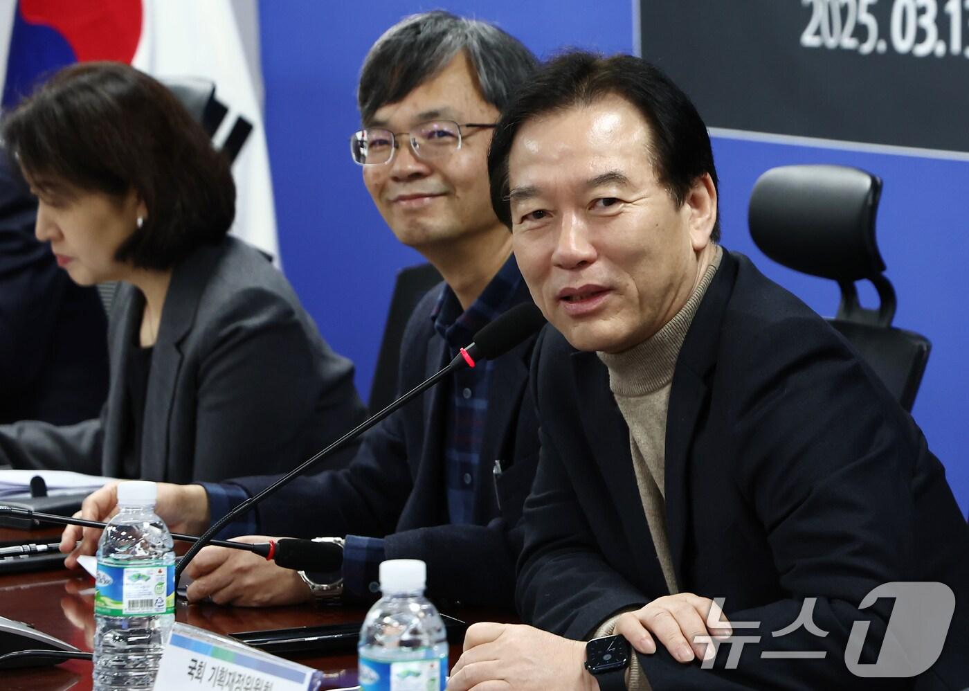 기재위원 정책 간담회…"국내 생산, 해외 판매도 적용"배터리업계 "직접 환급·3자 양도 선택 아닌 필수" 강조기획재정위원회 정태호 더불어민주당 간사가 13일 오전 서울 여의도 국회 의원회관에서 열린 전략산업 국내생산 촉진세제 도입 필요성 정책 간담회에서 인사말을 하고 있다. 2025.3.13/뉴스1 ⓒ News1 김민지 기자한재준 기자 金총리 강릉 아프리카돼지열병 방역 조치 긴급 지시李대통령 "한일 도움되는 관계로" 아소 전 日총리 "협력이 국익"