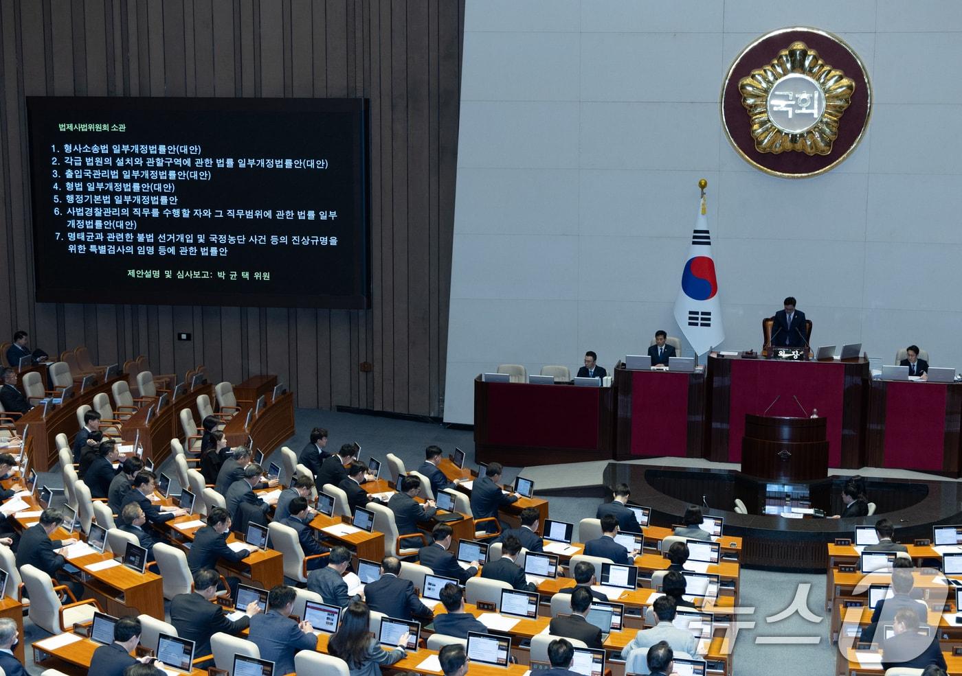 "법치 수호를 위한 지극히 당연한 결정""野 반복적 거부권 유도…남발 반성해라"27일 오후 서울 여의도 국회에서 열린 제422회 국회(임시회) 제7차 본회의에서 명태균과 관련한 불법 선거개입 및 국정농단 사건 등의 진상규명을 위한 특별검사의 임명 등에 관한 법률안 등 법제사법위원회 소관 법류안이 상정되고 있다. 2025.2.27/뉴스1 ⓒ News1 이재명 기자관련 키워드명태균특검법국민의힘최상목신동욱거부권재의요구권조현기 기자 국힘 "李대통령, 나토를 비토 마라…외교 참사 안 돼"민주 지지율 45% '역대 최고'…'내홍' 국힘 23% 4년만에 최저관련 기사[李대통령 100일]'1호 법안' 3대 특검, 尹·김건희 구속…남은 과제도 산적[일지]김건희 여사, 도이치·명태균·건진법사 의혹부터 기소까지[일지]김건희 여사, 도이치·명태균·건진법사 의혹부터 구속까지[일지]김건희 여사 도이치·명태균·건진법사 의혹부터 특검 출석까지민주 "명태균 특검, 국힘도 찬성표 던져…재발의 할 것"
