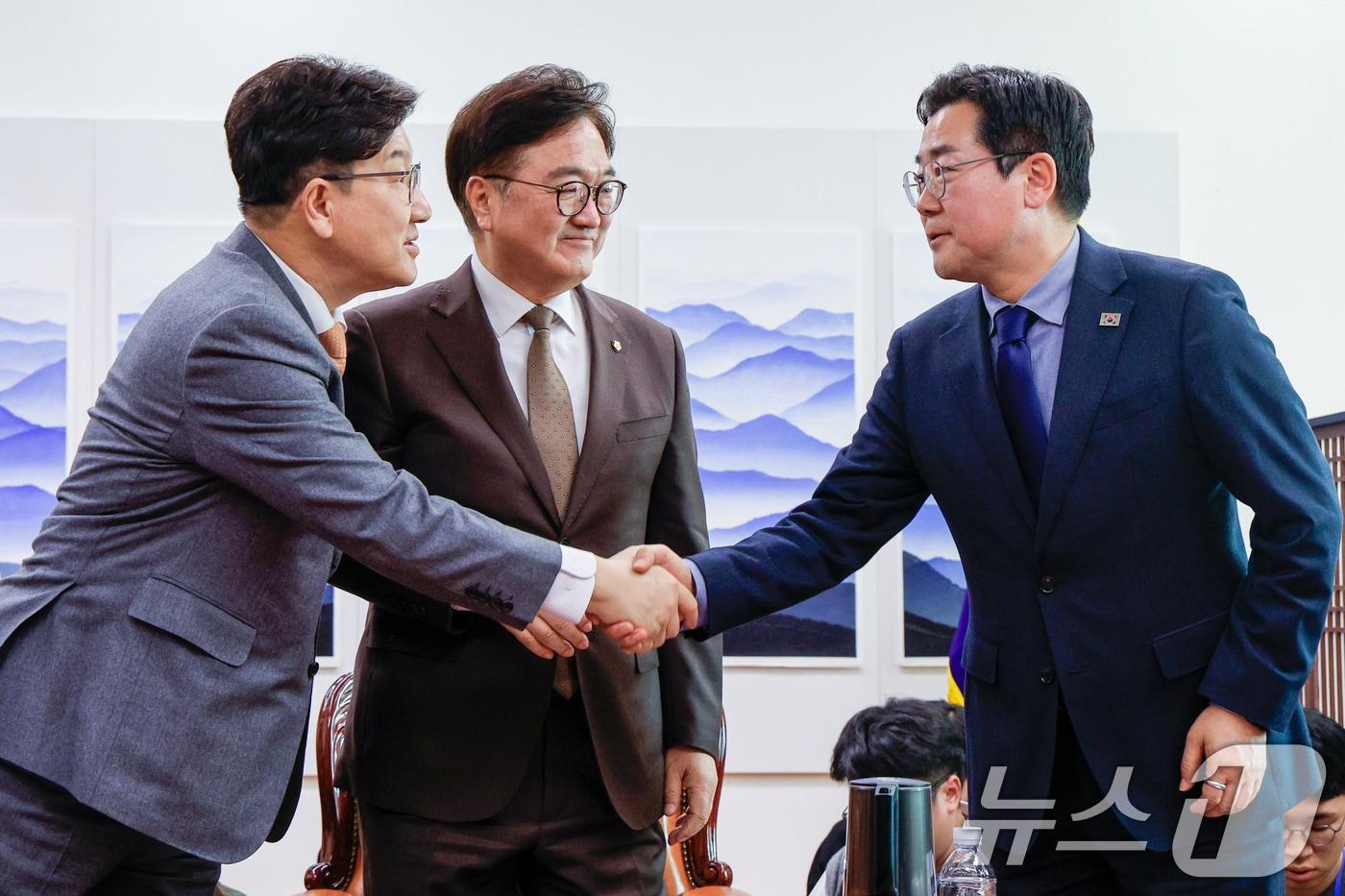 연금특위 '합의 처리' 문구…합의문엔 넣고, 구성 안건엔 뺐다與野, '군복무 크레디트' 두고 막판 진통…적극 중재 나선 우 의장국민의힘 권성동(왼쪽), 더불어민주당 박찬대 원내대표가 20일 서울 여의도 국회에서 연금개혁 관련 여야 합의문을 발표한 뒤 악수하고 있다. 가운데는 우원식 국회의장. 2025.3.20/뉴스1 ⓒ News1 안은나 기자관련 키워드우원식박찬대권성동연금개혁한병찬 기자 李대통령, 오늘 與野 지도부 오찬 간담회…단식 장동혁 '불참'李대통령, 새해 예산 보름 만에 '추경' 언급…선거 앞둔 정치권 '촉각'박기현 기자 60·70대도 등 돌렸다…국힘, 민주당 '대형악재'에도 지지율 하락'내란+김건희+해병대원' 2차 특검법 통과…野 "지선용 내란몰이"(종합)관련 기사깍듯이 고개숙인 대통령…박수 안 치던 국힘 의원들도 일어나 악수[뉴스1 PICK]'3대 특검법' 국회 본회의 與 주도 통과한덕수 공격받자, 국힘 대선후보급 '방어막'…'고성 삿대질' 주고받아정치권 '4·19' 계승 한목소리…국힘 "성찰" 민주 "국민이 주인"국힘·민주당 대표, 4·19혁명 기념식 참석…국힘 작년엔 불참