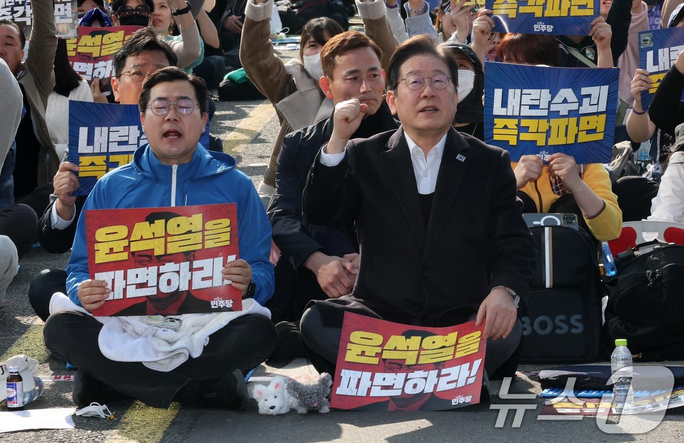 "민주주의 지킬지, 대한민국 파멸로 이끌지 결단해야"박찬대, 뮤지컬 영웅 OST 불러…이재명 발언 없어 경청만이재명 더불어민주당 대표와 박찬대 원내대표가 22일 서울 광화문 앞에서 열린 야5당 공동 비상시국 대응을 위한 범국민대회에 참석해 윤석열 대통령 탄핵을 촉구하는 구호를 외치고 있다. 2025.3.22/뉴스1 ⓒ News1 박세연 기자관련 키워드더불어민주당국회박찬대진보당조국혁신당임세원 기자 '내란+김건희+해병대원' 2차 특검법 통과…野 "지선용 내란몰이"(종합)최인호 前 의원 민주당 탈당…HUG 신임 사장 유력관련 기사정청래·박찬대, 지선 앞두고 술자리…양문석 "어색함 푸는 중"부산 시민사회 "해양수도권 관련 법안 조속처리돼야"與 원내대표 보선 최소 3파전…진성준·박정·한병도 출마(종합)與 원내대표 보선 최소 3파전…진성준·박정·한병도 출마인천 앞바다 야간조업 44년 제한 '전면 해제' 추진…이르면 내년 3월