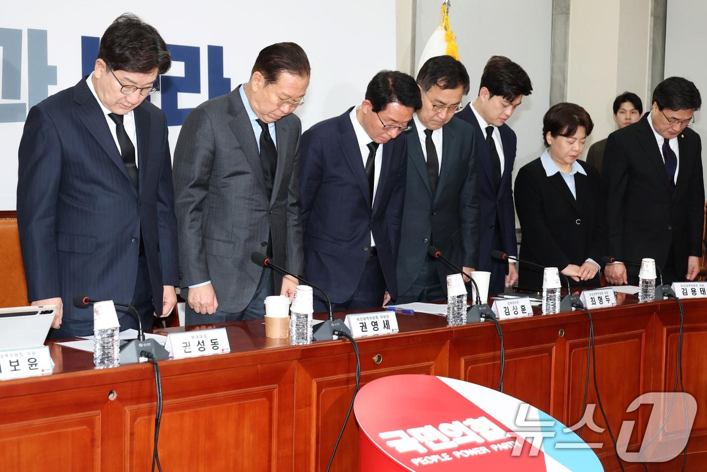 민주 올해 본예산 예비비 '일방 삭감' 비판도권영세 국민의힘 비상대책위원장과 권성동 원내대표, 김상훈 정책위의장 등이 27일 오전 서울 여의도 국회에서 열린 비상대책위원회의에 앞서 산불 희생자들을 추모하는 묵념을 하고 있다. 2025.3.27/뉴스1 ⓒ News1 이광호 기자관련 키워드산불손승환 기자 국힘, 尹 체포방해 징역 5년에 "입장 없다…사법부 판단 존중"송언석 "제1야당 대표 단식…공천뇌물 특검 반드시 이뤄져야"관련 기사사랑의 온도 100도 눈앞…광주는 '활활', 전남은 '미적'[오늘의 날씨] 강원(17일, 토)…아침 최저 -7도, 동해안 '불조심'"산불에 국가유산 잃어선 안 돼"…최휘영, 신속한 '초동 대응' 주문미세먼지 토요일 낮부터 해소…동쪽 '건조'·곳곳 '블랙아이스'(종합)산림청, 역대급 R&D 투자 확대…재해 대응·지역 성장 초점