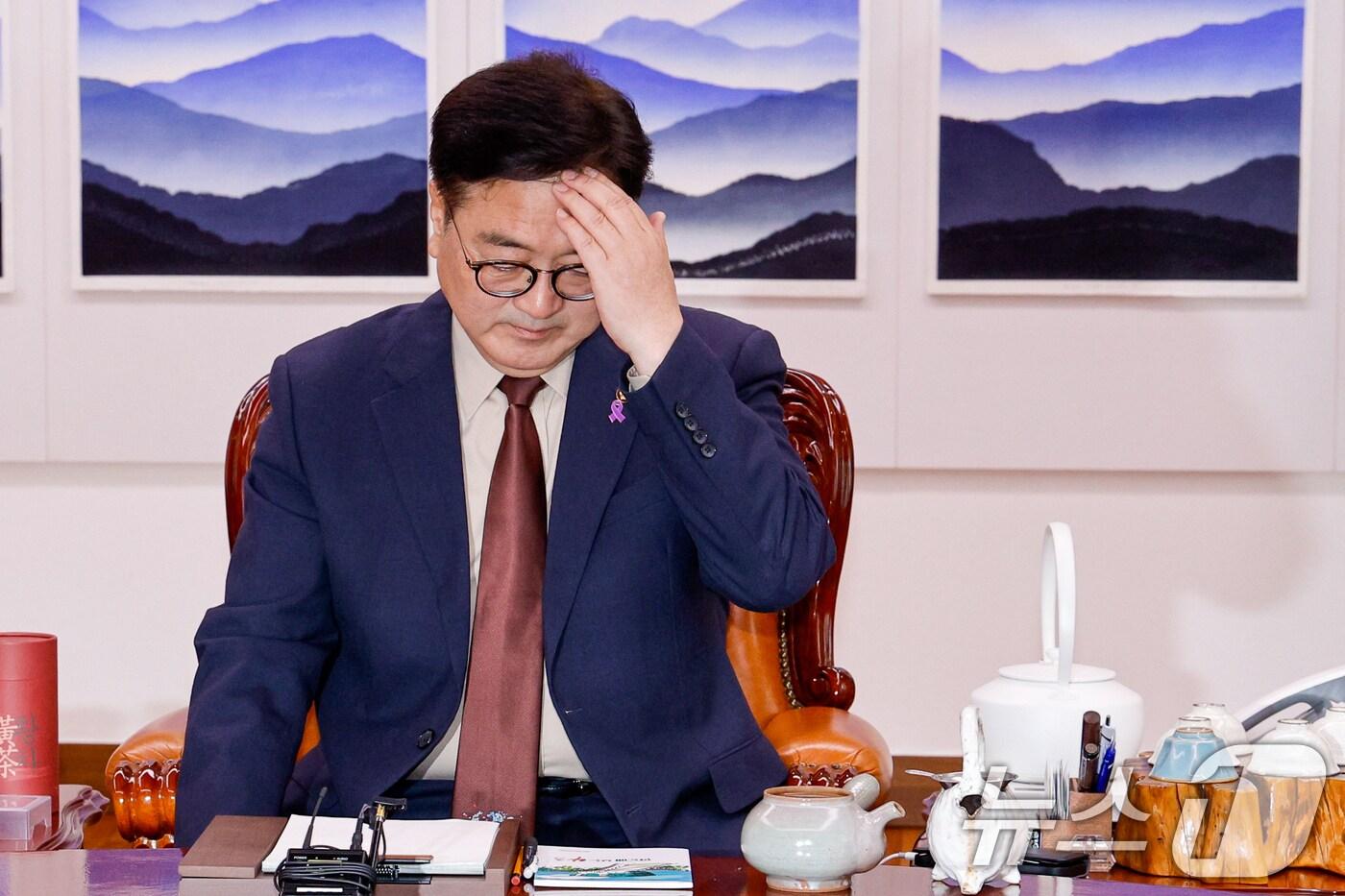 우원식 국회의장이 31일 오후 서울 여의도 국회에서 황운하 원내대표를 비롯한 조국혁신당 의원들을 접견하기 앞서 생각에 잠겨 있다. 2025.3.31/뉴스1 ⓒ News1 안은나 기자심언기 기자 [속보] 靑, 尹 체포방해 1심 징역 5년에 "법과 원칙따라 진행될 것"[속보] 李대통령, 21일 신년 기자회견…영빈관서 90분간 진행