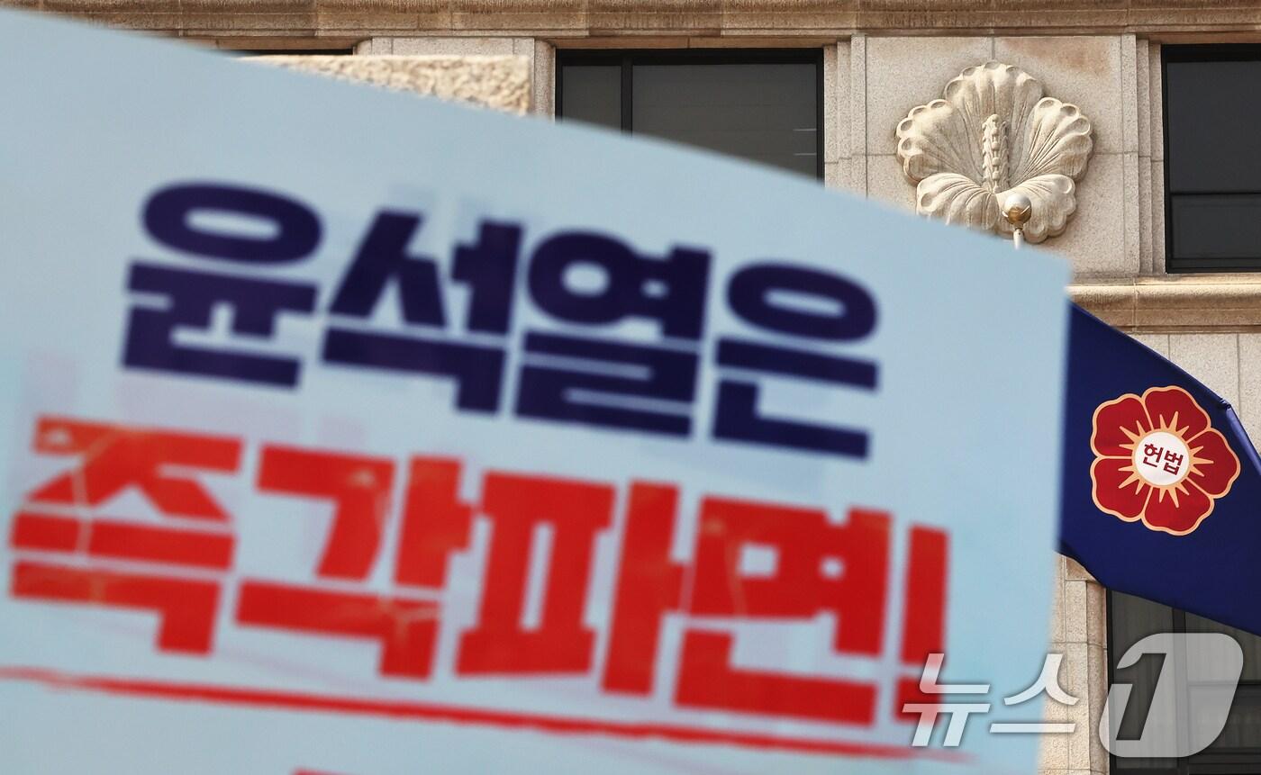 민주 "만장일치 파면 확신"…야권 "전원일치 바란다"기각 불안 해소…'쌍탄핵' 등 투쟁 카드 내려놓을 전망헌법재판소가 윤석열 대통령 탄핵 심판 선고기일을 오는 4일 오전 11시로 발표한 가운데 1일 오전 서울 종로구 헌재 앞에서 진보당 관계자들이 대통령 파면 선고를 촉구하는 피켓을 들고있다. 2025.4.1/뉴스1 ⓒ News1 장수영 기자관련 키워드민주당윤석열탄핵윤석열탄핵선고야당헌법재판소관련 기사내란 우두머리 1심 1년 만에 마무리…그 사이 구속·석방·파면된 尹尹 내란 단죄 9부 능선…"정치권 이제 정상화 길로 가야"'내란 수괴' 尹 사형 구형에 국힘 침묵…"사법부의 시간"[인터뷰 전문] 조응천 "與 특검 수사범위·대상, 힘으로 밀어붙일 것"尹이 주말 아닌 '평일' 계엄 선포한 진짜 이유[이승환의 로키]