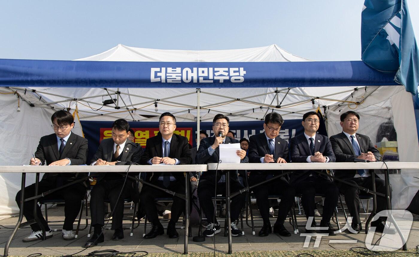 4일까지 장외투쟁 유지…더민초 24시간 천막 농성헌재 기자회견은 광화문에서…집회 참여도 독려박찬대 더불어민주당 원내대표가 1일 오전 서울 종로구 광화문 앞 민주당 천막당사에서 열린 원내대책회의에서 발언을 하고 있다. 2025.4.1/뉴스1 ⓒ News1 이재명 기자관련 키워드민주당비상대기윤석열탄핵윤석열탄핵선고광화문임세원 기자 '내란+김건희+해병대원' 2차 특검법 국회 통과…6개월 251명 투입[속보] '2차 종합 특검법' 필리버스터 종결…與 주도 법안 가결관련 기사尹이 주말 아닌 '평일' 계엄 선포한 진짜 이유[이승환의 로키][인터뷰 전문]이지은 "특검팀 격무 호소…'2차 특검 다른 분들 왔으면'"비상계엄 1년 후에도 둘로 갈라진 광장…내란 청산 vs 계엄 정당(종합)[인터뷰 전문] 신동욱 "인사 통한 檢 무력화, '무법천지' 10개월로 간다"'직무유기' 조태용, 구속심사 4시간만에 종료…"보필 잘 못해 송구"(종합)