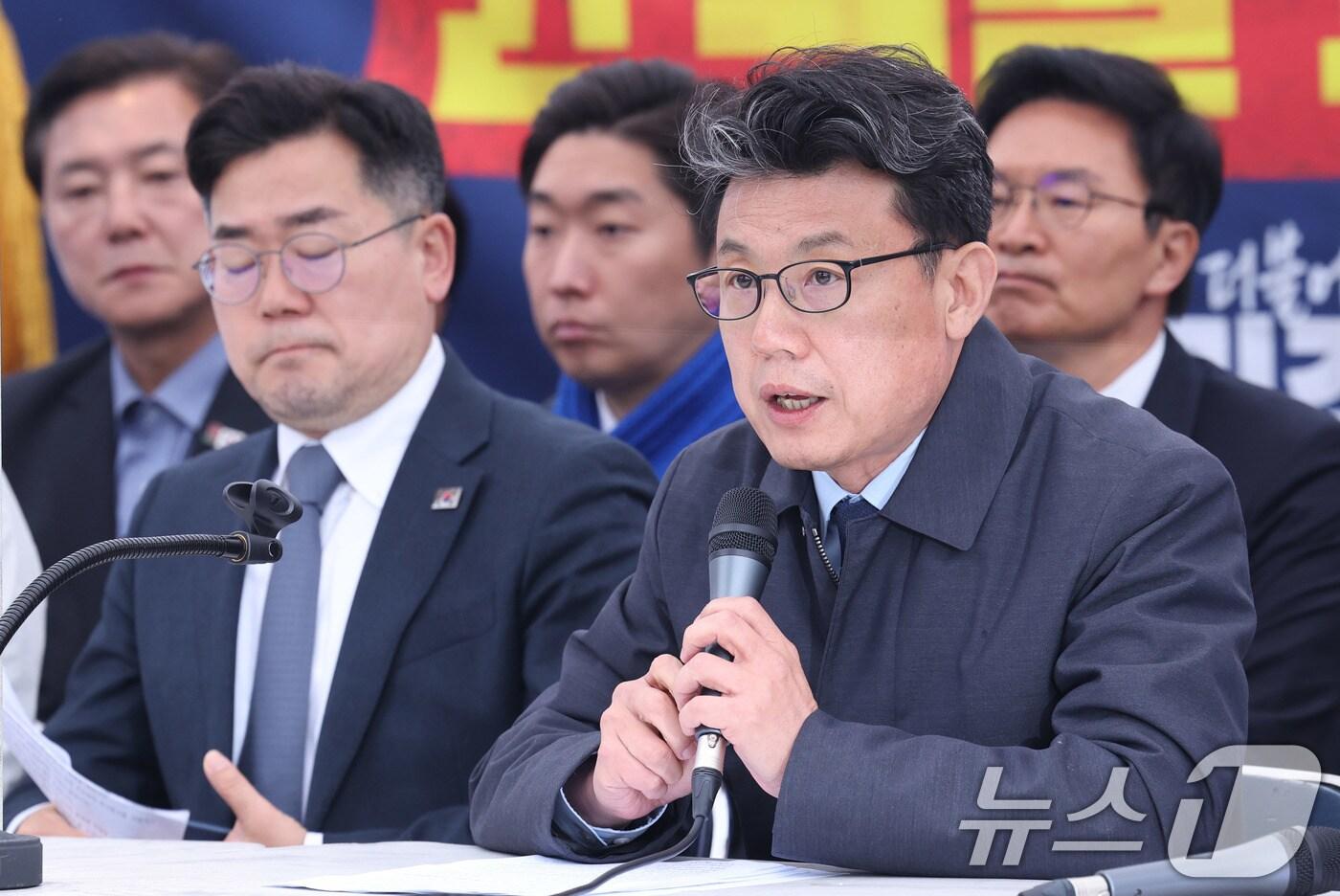 진성준 "한 대행 거부권, 의회 민주주의 존중 의지 의심""일단 재의 표결 시도…불발 땐 집중 투표제 등 포함"진성준 더불어민주당 정책위의장이 27일 서울 종로구 광화문 앞 민주당 천막당사에서 열린 정책조정회의에서 발언하고 있다. 2025.3.27/뉴스1 ⓒ News1 박지혜 기자관련 키워드더불어민주당상법 개정안거부권한재준 기자 李대통령, 21일 신년 기자회견…'모두 누리는 대도약' 주제李대통령 "광역도시 탄생, 균형발전 큰 계기…함께 힘 모아달라"관련 기사김병기 원내대표 취임 100일…당내 갈등·여야 협치 시험대[인터뷰 전문]정성국 "장동혁, 지선 전 친한계와 함께할 수도"장동혁 "정청래와 악수하려 마늘·쑥 먹기 시작…악수 응해 감사"국힘, 신임 당대표 오늘 탄생…'반탄 수장'에 여야 관계는 '극한 대결'與 "노란봉투법·상법 개정안이 경제 내란법? 적반하장"