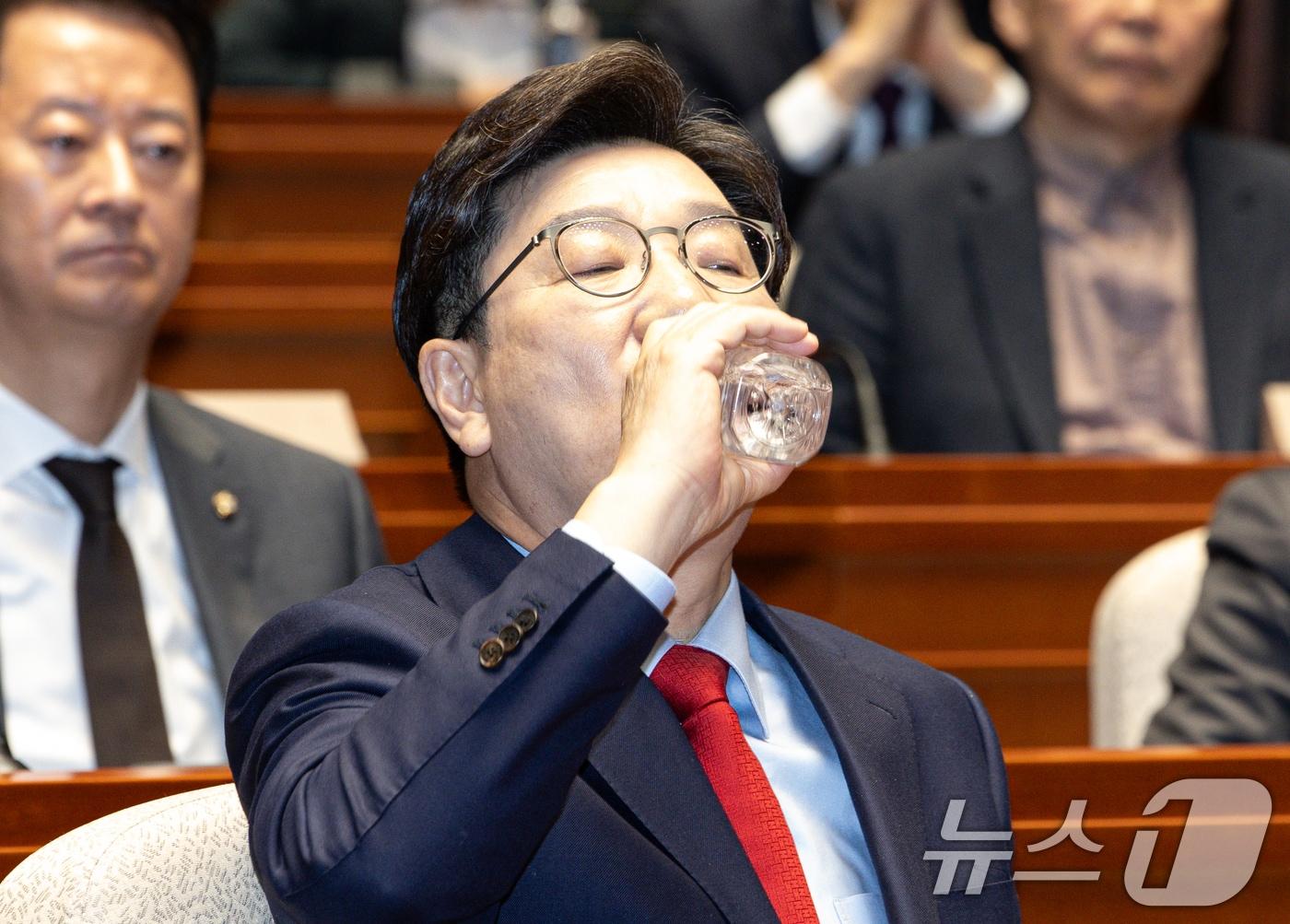 비대위원장 "거취 맡기겠다"…의원들 "지도부 교체 안돼"의총 조용히 진행…일부 "李막아야" 대선앞 단합 호소권성동 국민의힘 원내대표가 4일 오후 서울 여의도 국회에서 열린 의원총회에서 발언을 마친 후 목을 축이고 있다. 2025.4.4/뉴스1 ⓒ News1 이재명 기자관련 키워드尹비상계엄선포윤석열탄핵인용조현기 기자 국힘 "李대통령, 나토를 비토 마라…외교 참사 안 돼"민주 지지율 45% '역대 최고'…'내홍' 국힘 23% 4년만에 최저구진욱 기자 서울 지하철 3호선 오금역 선로 연기…조치 완료 후 운행 재개행안부, 수도권 대설 대비 합동 제설 대응체계 점검관련 기사'1호 당원' 파면에 국힘 '참담'…잠룡 많지만 강자 안 보여[尹탄핵인용] 국힘 "헌재 결정 무겁게 받아들여…겸허히 수용"