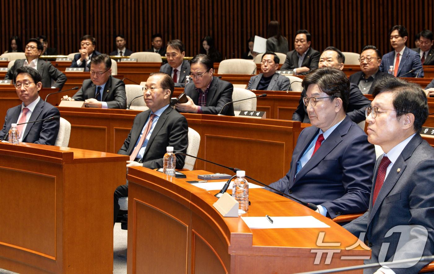 의원들, 파면 후 첫 휴일 맞아 지역구로…"민심 청취"탄핵 찬성파 조치 요구 나올 듯…당 체질 개선 목소리도권영세 국민의힘 비상대책위원장과 권성동 원내대표를 비롯한 의원들이 4일 오후 서울 여의도 국회에서 열린 의원총회에 참석해 있다. 2025.4.4/뉴스1 ⓒ News1 이재명 기자관련 키워드국민의힘의원총회조기대선서상혁 기자 장동혁, 내전 중 쌍특검 단식 이틀차…친한계 "국면전환용"천하람 "지금 필요한 건 부관참시 2차 특검 아닌 통일교·돈 공천 특검"관련 기사100회 채운 국힘 의원총회 살펴보니…'당론의 장'이자 '처형의 무대''尹의 친구' 권성동 구속 기로에…"정치보복 나 하나로 끝내라"[인터뷰 전문]배현진 "혁신·자강 안 하면 남의 손에 처참한 상황 맞을 것"동력 잃어가는 '윤희숙 혁신위'…20일 의총이 운명 가른다與 "총리 인준 방해하면 법적 책임"…野 "정권 몰락 시작될 것"