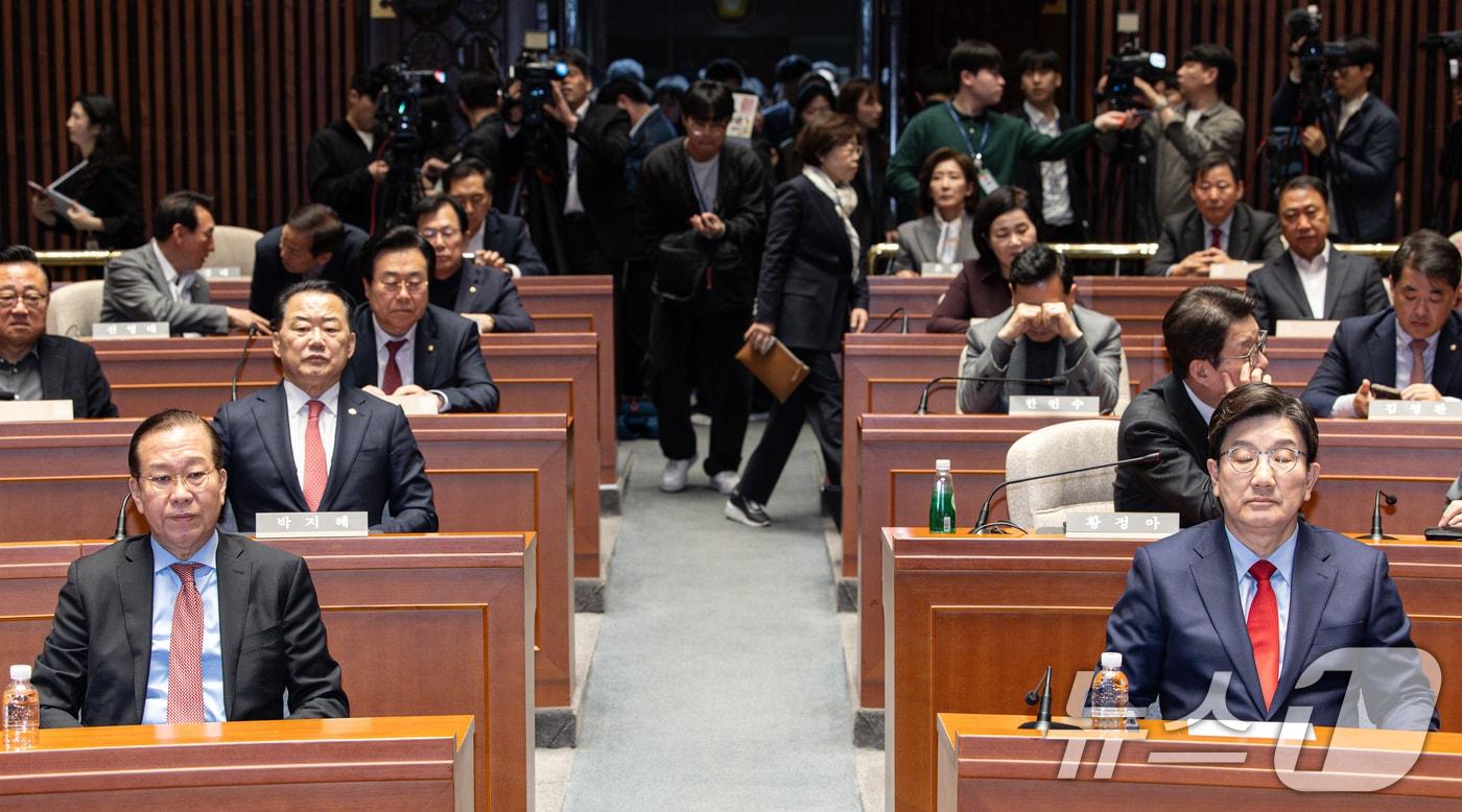 권영세 국민의힘 비상대책위원장과 권성동 원내대표가 4일 오후 서울 여의도 국회에서 열린 의원총회에 참석해 있다. 2025.4.4/뉴스1 ⓒ News1 이재명 기자관련 키워드오늘의 주요일정관련 기사[오늘의 주요일정] 정치·정부 (16일, 금)[오늘의 주요일정] 충북·세종(16일, 금)[오늘의 주요 일정] 경기(16일, 금)李대통령, 오늘 與野 지도부 오찬 간담회…단식 장동혁 '불참'[오늘의 주요일정] 부산·경남(16일, 금)