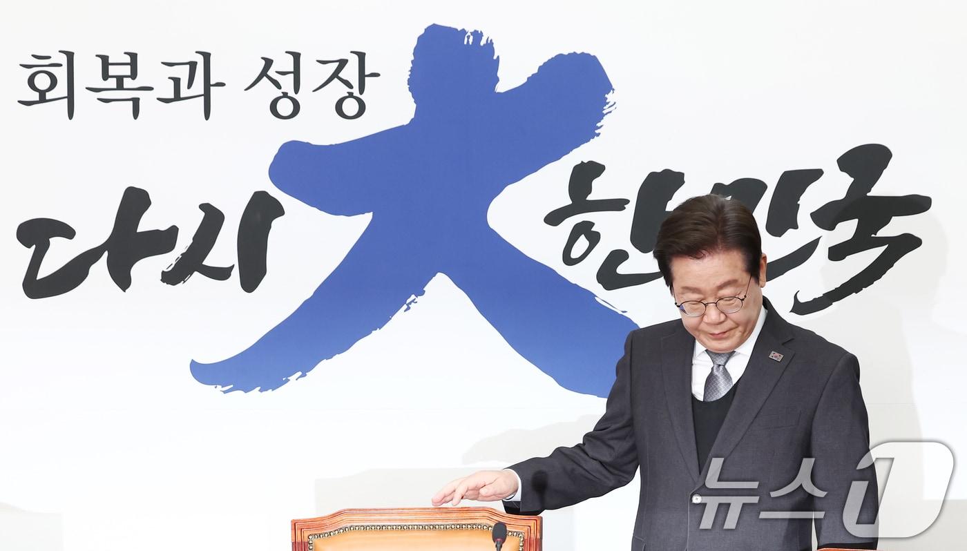 이재명 더불어민주당 대표가 4일 서울 여의도 국회에서 헌법재판소의 윤석열 대통령 파면 결정에 대한 입장을 밝히기 위해 입장하고 있다. 2024.4.4/뉴스1 ⓒ News1 김민지 기자