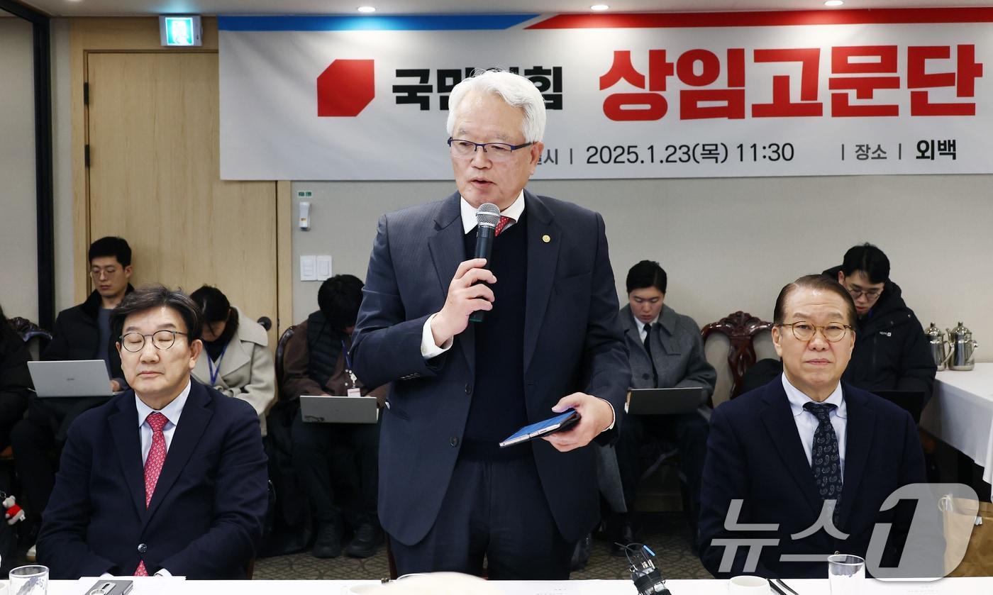 권영세 "대선 승리가 당과 나라 구한단 생각으로 이길 각오 다진다"정의화 국민의힘 상임고문단 회장이 23일 서울 여의도의 한 식당에서 상임고문단 회의에서 인사말을 하고 있다. 오른쪽부터 권영세 비대위원장, 정 회장, 권성동 원내대표. 2025.1.23/뉴스1 ⓒ News1 김민지 기자관련 키워드조기대선박기범 기자 우주경제 1조 달러 눈앞인데…韓 우주항공 수출 '걸음마' 수준대한항공·아시아나항공, 임직원 가족과 '자녀 안전체험' 행사 진행손승환 기자 국힘, 尹 체포방해 징역 5년에 "입장 없다…사법부 판단 존중"송언석 "제1야당 대표 단식…공천뇌물 특검 반드시 이뤄져야"관련 기사신동욱 "코어 다져야 외연 확장 가능…쇄신안 발표 뒤 방점"김두겸 22.6%·김상욱 20.2%…차기 울산시장 다자 대결 '접전'美, 마두로측근 남겨두되 고강도 압박…임시대통령 "협력" 전환베네수 임시대통령 "공존·협력 희망"…트럼프 위협에 태세 전환주4.5일제 시범 도입부터 로드맵까지…정부, 근로시간 단축 가속