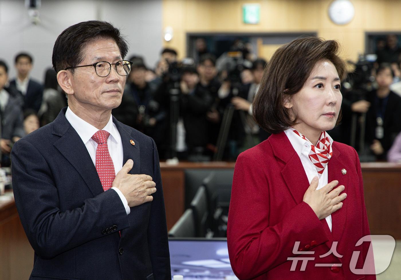 햄버거 식사하며 노동·청년·민생경제 정책 현안 논의대선 국면 시작한 후 후보자간 첫 회동…연합 신호탄 되나김문수 고용노동부 장관 나경원 국민의힘 의원이 19일 오전 서울 여의도 국회 의원회관에서 열린 '2030·장년 모두 Win-Win하는 노동개혁' 대토론회에서 국민의례를 하고 있다. 2025.2.19/뉴스1 ⓒ News1 이재명 기자관련 키워드나경원김문수서상혁 기자 장동혁, 내전 중 쌍특검 단식 이틀차…친한계 "국면전환용"천하람 "지금 필요한 건 부관참시 2차 특검 아닌 통일교·돈 공천 특검"관련 기사홍준표 "장한석 모여본 들 지선 어려워…살려면 尹 사람 다 도려내야"윤석열·김문수·나경원 지지 김흥국 "아들딸 보기 부끄러운 아버지 됐다"장예찬 "김문수-한동훈 러브샷? 정계은퇴 러브 샷"장동혁 "내부의적 1명" 한동훈 "날 찍어내라"…친윤도 우려조국 "장동혁+나경원 vs 한동훈+김문수? 난형난제"