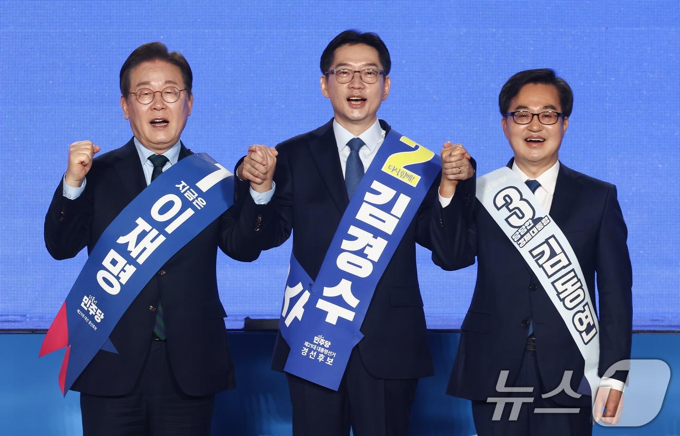 노무현·문재인 정치적 고향…김경수 주무대이재명 "해수부 부산 이전" 김동연 "부산 금융 물류 수도"더불어민주당 이재명(왼쪽부터), 김경수, 김동연 대선 경선 후보가 19일 충북 청주체육관에서 열린 제21대 대통령선거 후보자 선출을 위한 충청권 합동연설회에서 기념촬영을 하고 있다. 2025.4.19/뉴스1 ⓒ News1 김민지 기자관련 키워드2025대선조기대선더불어민주당이재명김경수김동연민주김경민 기자 트럼프, 노벨평화상 들고 활짝…마차도 "결단력 기리며 증정"美, 내달 동맹국 외교장관 모아 '핵심광물 합의' 모색…"中의존 탈피"원태성 기자 "수원갈빗집 보고 있나"…SK하이닉스, 올해 '1.4억' 역대급 성과급 파티코오롱그룹, '무지개 디딤돌 멘토링' 10기 해단식 개최관련 기사김두겸 22.6%·김상욱 20.2%…차기 울산시장 다자 대결 '접전'[인터뷰 전문] 정은혜 "이혜훈 배신자라는 국힘, 극우 선언한 것"與 '6·3지선 공천안' 이달 확정…당원 권리·부적격자 기준 강화與 "지선 공천기준 이달 확정…부적격 기준에 교제폭력 포함"이준석 "檢, 정권 이해 맞춘 선택…모래 속 머리 파묻은 타조"