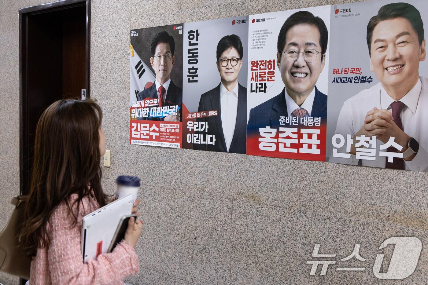 김 "2차서 끝" 한 "반드시 과반" 홍 "바로 본선" 자신감결선 불가피 전망 많아…절대 강자 없는 물고 물리는 싸움23일 오전 서울 여의도 국회에 국민의힘 1차 컷오프를 통과한 김문수(왼쪽부터), 한동훈, 홍준표, 안철수 후보 포스터가 붙어 있다. 2025.4.23/뉴스1 ⓒ News1 이재명 기자관련 키워드2025대선조기대선박기현 기자 60·70대도 등 돌렸다…국힘, 민주당 '대형악재'에도 지지율 하락'내란+김건희+해병대원' 2차 특검법 통과…野 "지선용 내란몰이"(종합)관련 기사김두겸 22.6%·김상욱 20.2%…차기 울산시장 다자 대결 '접전'美, 마두로측근 남겨두되 고강도 압박…임시대통령 "협력" 전환베네수 임시대통령 "공존·협력 희망"…트럼프 위협에 태세 전환주4.5일제 시범 도입부터 로드맵까지…정부, 근로시간 단축 가속[이재영 칼럼] '서울대 10조 만들기'를 제안한다