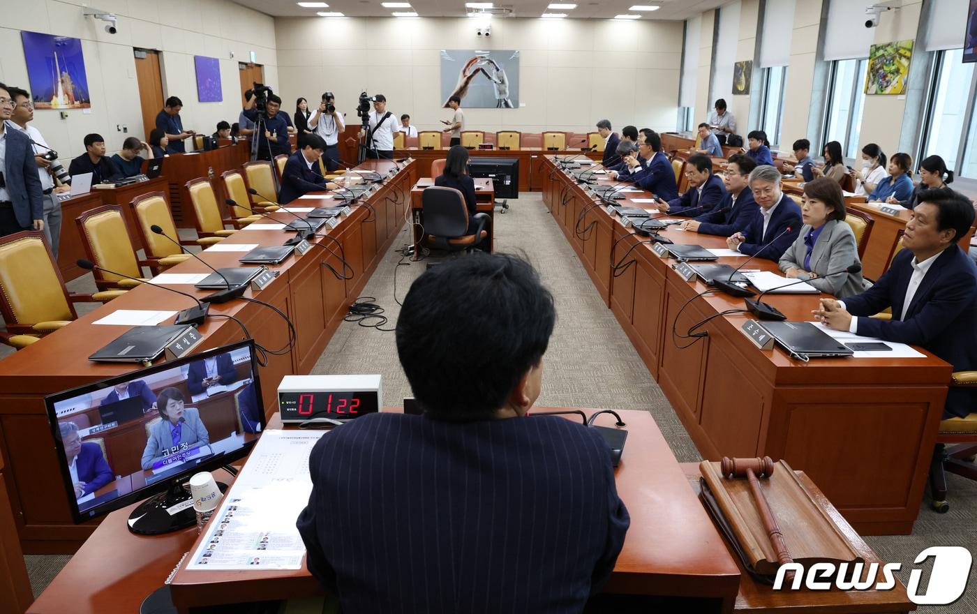 31일 서울 여의도 국회에서 과학기술방송통신위원회 전체회의가 여당 의원들이 불참한 가운데 열리고 있다. 2023.8.31/뉴스1 ⓒ News1 송원영 기자