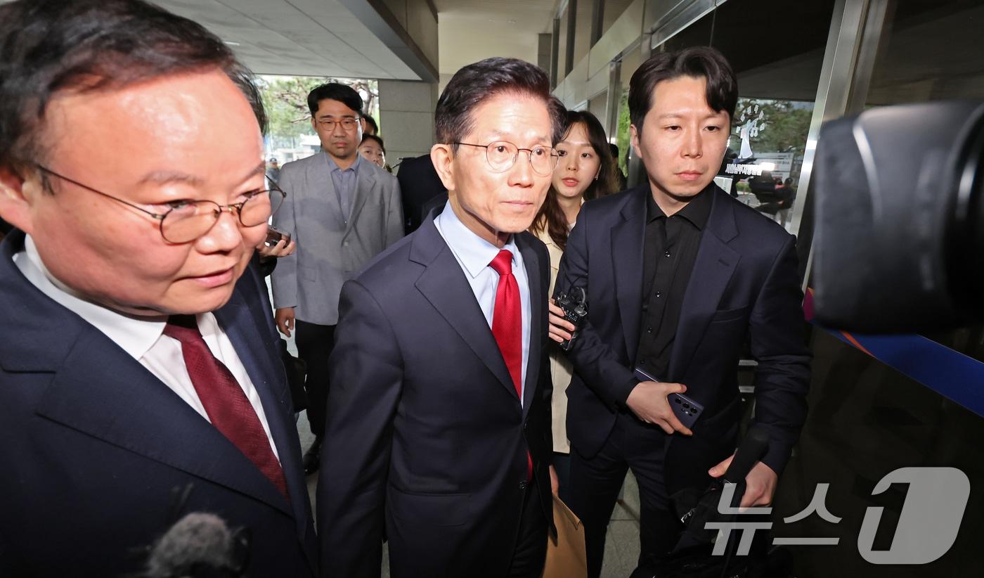 국민의힘으로부터 대통령선거 후보 자격이 취소된 김문수 후보가 10일 오후 서울 양천구 남부지방법원에서 열린 후보 선출취소 효력정지 가처분 심문기일에 출석하고 있다. 2025.5.10/뉴스1 ⓒ News1 장수영 기자