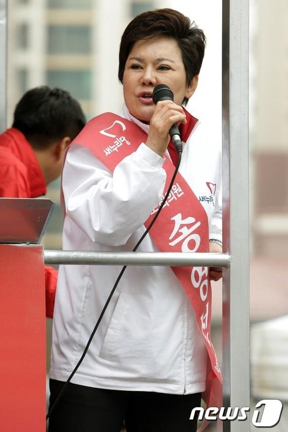 새누리당 남양주시갑 송영선 후보가 30일 오후 경기도 남양주 와부읍 덕소주공아파트를 찾아 유세를 벌이고 있다. 뉴스1/머니투데이 © News1 이정선 인턴기자