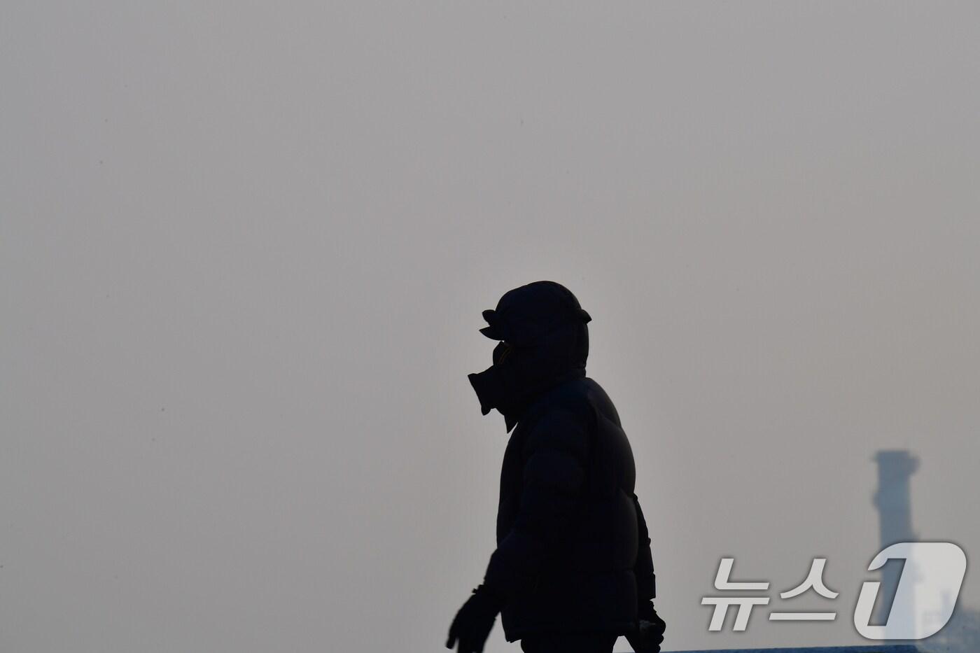 경북 포항시 전역이 미세먼지에 뒤덮인 가운데 마스크와 방한복을 입은 시민이 송도해수욕장 해안길을 걸어가고 있다. 2025.1.22/뉴스1 ⓒ News1 최창호 기자