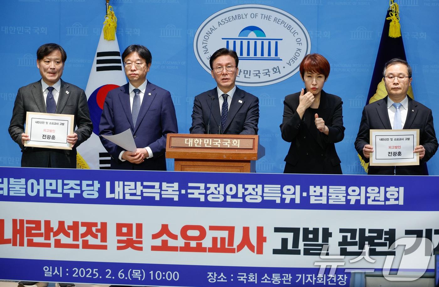 "전광훈, '국민저항권으로 맞짱 떠야한다' 등 불법 계엄 옹호""전광훈이 주장하는 국민저항권은 폭동에 불과"김민석 더불어민주당 최고위원이 6일 서울 여의도 소통관에서 '내란선전 소요교사 전광훈 고발 기자회견'을 하고 있다. 2025.2.6/뉴스1 ⓒ News1 안은나 기자관련 키워드더불어민주당민주당전광훈 목사전광훈 사랑제일교회 목사김민석 최고위원김민석 더불어민주당 의원김민석 전광훈전광훈 윤석열김지현 기자 李대통령, 지선 앞둔 올해 첫 내치 화두 '지방균형·국민통합' 꺼냈다李대통령 "아소 총리, 한일정상회담 日사회서 긍정 평가라 전해"관련 기사특검법 합의 파기, 여야 대화창구 막혔다…野 '투쟁' 급류與 "국힘 '국회 보이콧'으로 자체 방학…공당 자격 없다"본회의장 울려퍼진 "독재타도" 구호…인권위원 선출안 부결에 野 퇴장국힘 몫 이상현·우인식 인권위원 선출안 부결…與 "극우 인사"경찰, 전광훈·사랑제일교회 압수수색…서부지법 난동 사태 관련