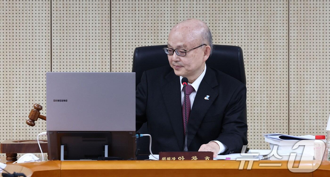 안창호 국가인권위원회 위원장이 10일 서울 중구 국가인권위에서 열린 '국가인권위원회 2차 전원위원회'에서 의사봉을 두드리고 있다. 이날 인권위는 '계엄 선포로 야기된 국가적 위기 극복 대책 권고의 건'을 상정할 예정이다. 일명 '윤 대통령 방어권 보장 안건'으로 불리는 이 안건은 김용원 상임위원이 주도해 발의한 것으로 윤 대통령의 탄핵 심판 방어권 보장과 불구속 수사를 내용으로 담고 있어 논란이 일고 있다. (공동취재) 2025.2.10/뉴스1 ⓒ News1 신웅수 기자