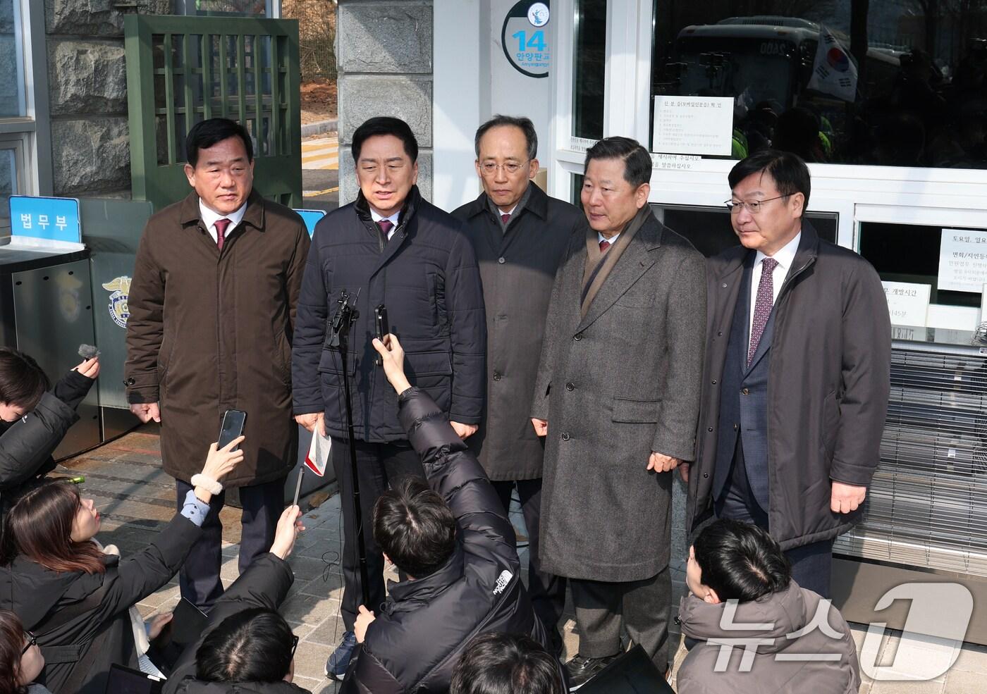 김기현 국민의힘 의원이 10일 오후 경기 의왕시 서울구치소 앞에서 국민의힘 의원들과 함께 윤석열 대통령 면회를 마친 후 취재진 질문에 답하고 있다. 왼쪽부터 박성민, 김기현, 추경호, 이철규, 정점식 의원. 2025.2.10/뉴스1 ⓒ News1 김영운 기자관련 키워드尹비상계엄선포윤석열친윤김대식국민의힘면회인간의도리현직대통령신분박태훈 선임기자 신동욱, 마지막 해법이라며 한동훈에 '최고위 공개검증' 제안천하람 "이혜훈 도덕성마저 처참, 2016년엔 '동료 의원 낙선 기도' 요청까지"관련 기사장예찬 "金여사, 식음전폐해 기력없다…'총 갖고' '이재명 쏘고' 그럴 건강 아냐"친윤 김대식 "헌재 빨리 결론내 달라…윤상현 '의원 총사퇴' 주장, 호응 별로"인요한 "尹·한동훈 화해시키려 했지만…의원 마음 못얻은 韓, 후보 못될 것"윤상현 "민주당이 9번째 별 달아줘 고맙다…尹 탄핵 저지 더 열심히"조정훈 "尹 복귀땐 6개월내 개헌하고 물러났으면…한동훈 개헌 외면할 사람"