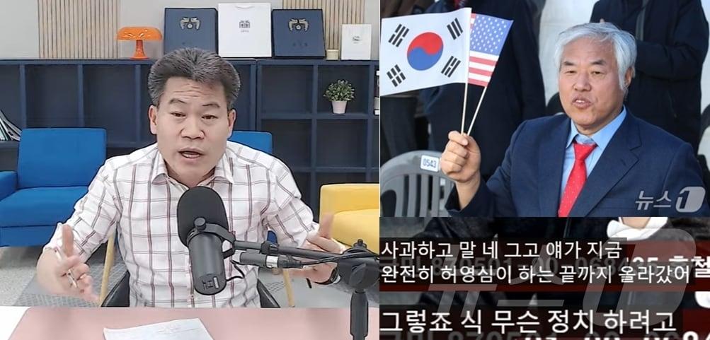 강성 보수진영의 이른바 여의도파 선봉장인 전한길 강사(왼쪽)와 광화문파 전광훈 목사. (유튜브 갈무리) ⓒ 뉴스1 관련 키워드尹비상계엄선포권성동전광훈전한길장성철보수평론가국민의힘헌법재판소박태훈 선임기자 신평 "김부겸, 尹 총리 점찍자 '당 동의 얻어야'…이혜훈은 그냥 배신"김종인 "국힘, 이혜훈 제명은 옹졸…장동혁 단식? 어리석은 생각, 투쟁보다 변화를"관련 기사신지호 "국힘, 권영세 권성동 쌍권 위에 '쌍전'…전광훈·전한길에 끌려다닌다"신지호 "친윤, 멀윤과 전광훈의 자통당파로 분리 중…권성동 멀윤, 윤상현 자통당"