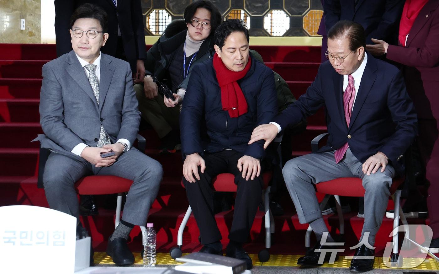 국민의힘 권영세 비상대책위원장과 권성동 원내대표가 지난 3월 6일 오전 서울 여의도 국회 로텐더홀에서 마은혁 헌법재판관 후보자 임명을 반대하며 무기한 단식 농성 중인 박수영 의원을 찾아 대화하고 있다. 2025.3.6/뉴스1 ⓒ News1 김민지 기자관련 키워드조기대선박수영국민의힘권성동원내대표한덕수권성동한덕수불출마박수영65%출마쪽설득중박태훈 선임기자 신동욱, 마지막 해법이라며 한동훈에 '최고위 공개검증' 제안천하람 "이혜훈 도덕성마저 처참, 2016년엔 '동료 의원 낙선 기도' 요청까지"관련 기사민주, '지귀연 합성사진 게시' 국힘 박수영 경찰에 고발홍준표 "인간말종 권영세 권성동 박수영 성일종 은퇴하라…김문수 파이팅"김문수 "한국형 소형원전으로 전기료 반값"…에너지 공약외신 인터뷰·부활절 예배…후보 같은 한덕수 '출마 노코멘트'작아진 '한덕수 불씨'…국힘 최종 후보에 달렸다
