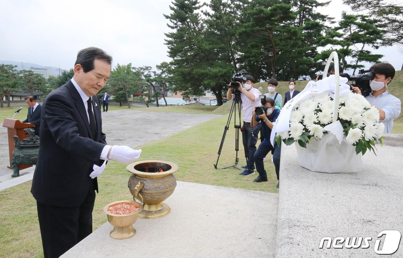 정세균 국무총리가 14일 오후 충남 홍성 홍주의사총을 참배하고 있다.2020.8.14/뉴스1 ⓒ News1 김기태 기자