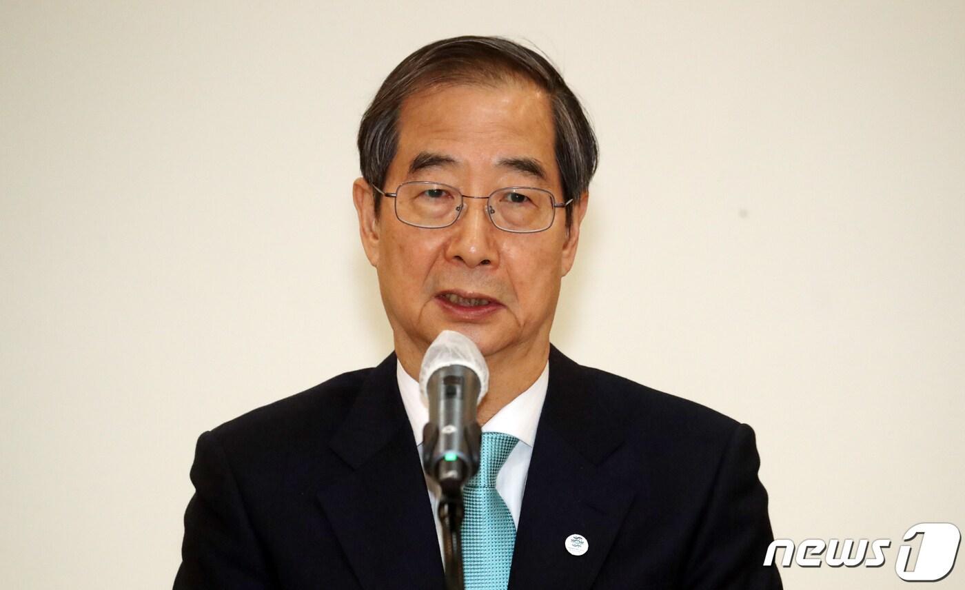 한덕수 국무총리가 29일 오전 서울 종로구 정부서울청사 별관에서 열린 출입기자 백브리핑에서 모두 발언을 하고 있다. 2023.3.29/뉴스1 ⓒ News1 김명섭 기자