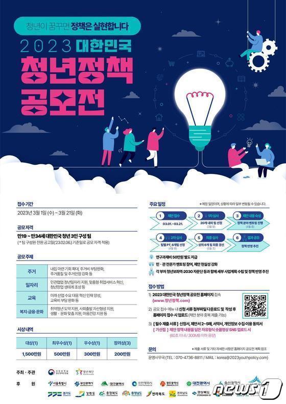 한덕수 "최종 수상작, 실제 정책으로 구현될 수 있도록 직접 챙기겠다"2023년 대한민국 청년정책 공모전 홍보 포스터(국무조정실 제공)./ 관련 키워드청년정책공모전한덕수대한민국배움터윤수희 기자 GS25, 에드워드 리 시리즈 100만 개 판매…'흑백케이크' 사전예약탈팡에 주문량 뚝…쿠팡 물류 무급휴직 5000명 넘었다