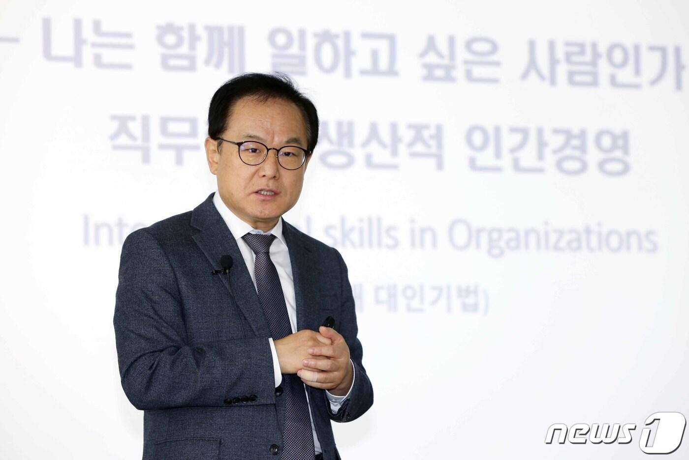 김승호 인사혁신처장이 지난 22일 대전시 유성구 카이스트에서 미래과학기술정책과정 교육생을 대상으로 '대인관계기법' 특강을 하고 있다. (인사혁신처 제공) 2023.11.22/뉴스1