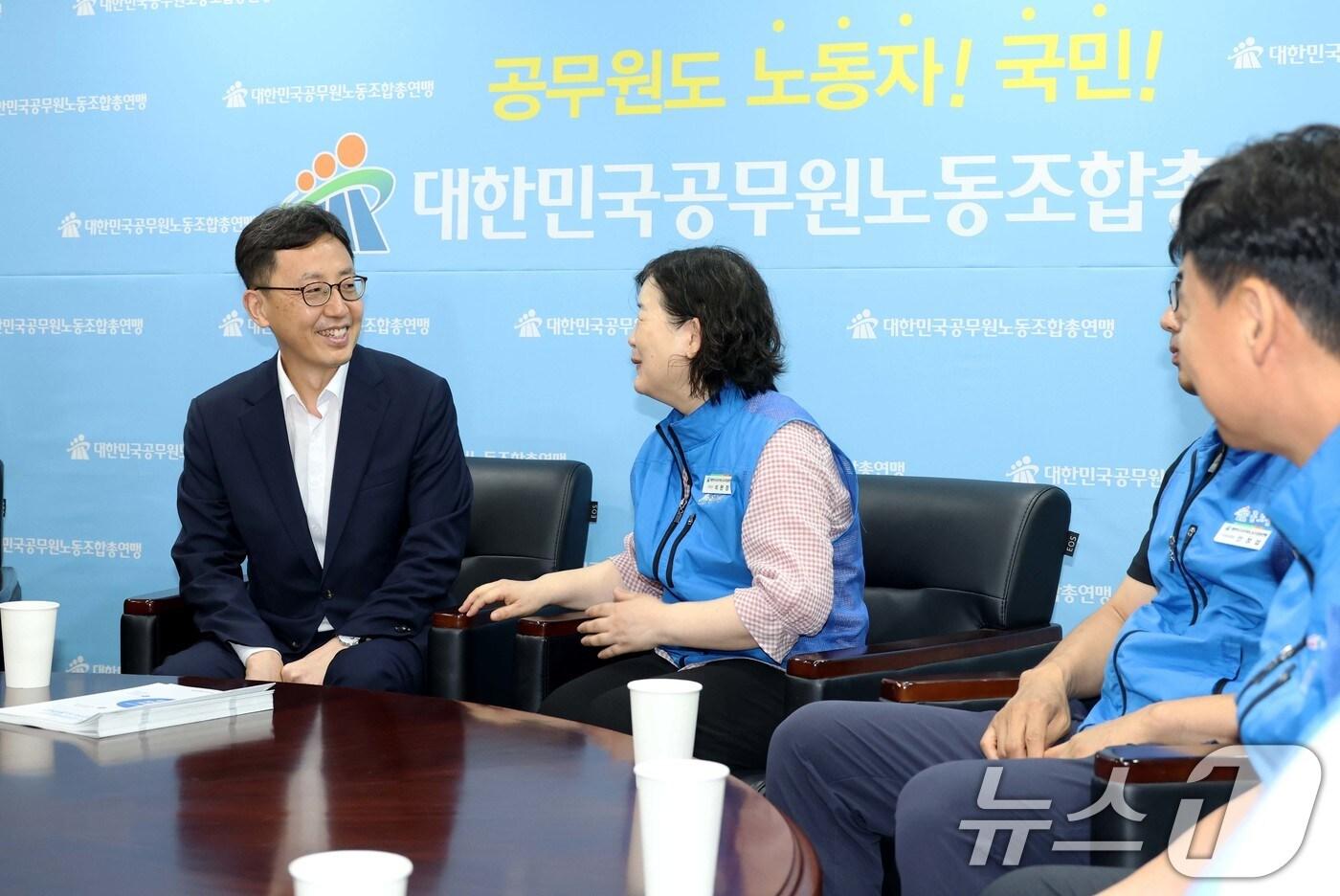 연원정 인사혁신처장이 22일 서울 용산구 대한민국공무원노동조합총연맹 사무실을 방문해 집행부와 대화를 나누고 있다.  (인사혁신처 제공) 2024.7.22/뉴스1