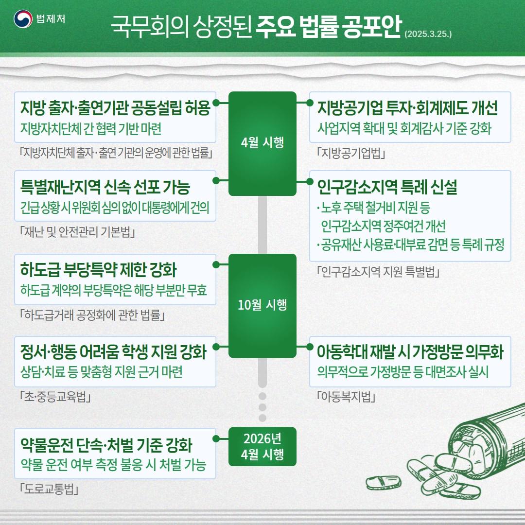 법제처, 관련 내용 41개 법률 공포안 국무회의 상정내년 4월 약물 운전 처벌 강화…측정 불응시엔 처벌(법제처 제공)관련 키워드법제처이기림 기자 李대통령 "여야, 국익·균형발전 힘 모아야"…국힘 회동 불참(종합)靑, 尹 체포방해 1심 징역 5년에 "법과 원칙따라 진행되고 있다"관련 기사'5세대 실손보험' 상반기 출시…금융위, 보험업법 시행령 입법예고근로복지공단, 역할은 늘었는데 법은 그대로…조직법 제정 논의 본격화연명의료 결정, 개인 판단서 절차 중심으로…의료진들 "기준이 분명해졌다"金총리 20일 테러대책위 소집…李대통령 가덕도 피습 지정 심의한정애, 심우정 딸 논란에 '특혜채용 방지법'…"구인자에 국가기관 포함"