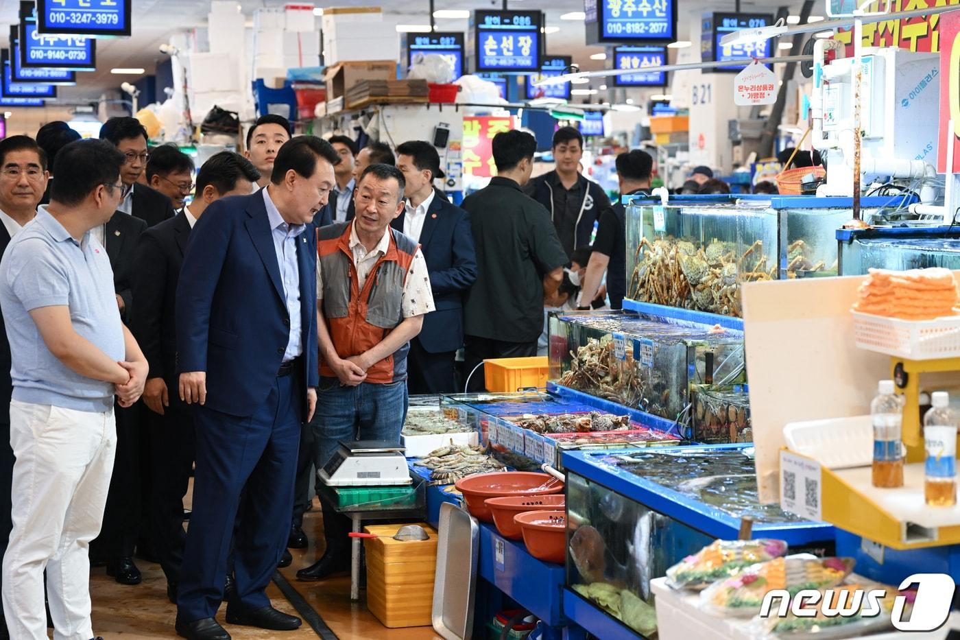 윤석열 대통령이 31일 서울 영등포구 노량진수산시장을 방문, 회식당에서 구매한 수산물로 점심식사를 하고 있다. (대통령실 제공) 2023.8.31/뉴스1 ⓒ News1 오대일 기자관련 키워드윤석열대통령노량진수산시장후쿠시마오염수수산물전통시장온누리상품권관련 기사"이재명 괴물 정권 탄생 막아야"…한동훈, 대선 출마 선언(종합)"韓 안보 지도 내놔라" 구글…특화 기능으로 맞서는 토종 기업