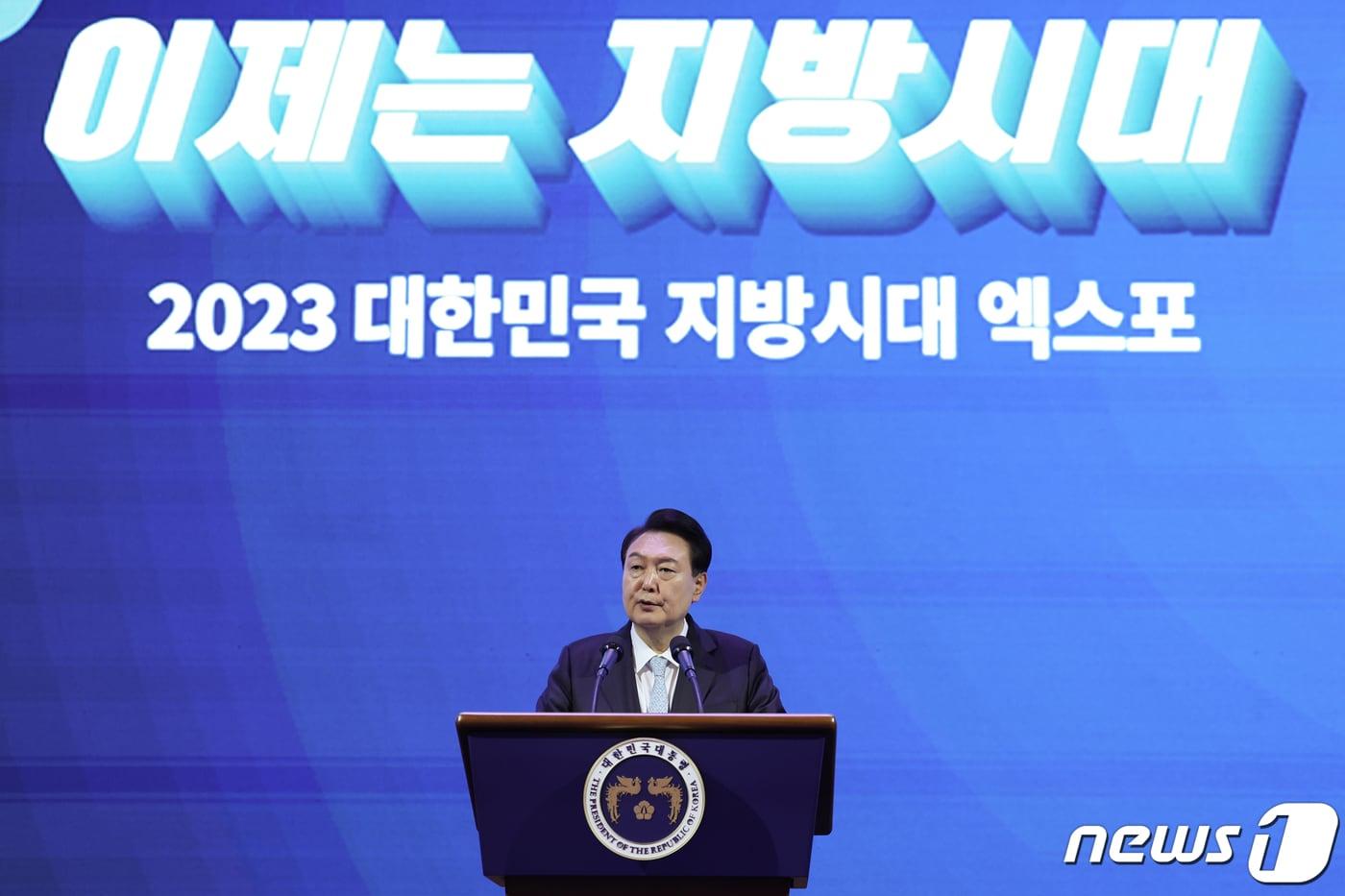 강원 등 6곳 기회발전특구 신규 지정 축하"34조 기업 투자 계획…주민 혜택 체감할 것"윤석열 대통령이 2일 대전 유성구 대전컨벤션센터에서 열린 2023 지방시대 엑스포 및 지방자치·균형발전의 날 기념식에서 기념사를 하고 있다. (대통령실 제공) 2023.11.2/뉴스1 ⓒ News1 오대일 기자관련 키워드윤석열대통령지방자치균형발전기회발전특구일자리관련 기사'尹 사형' 구형 직후 '한동훈 제명'…국힘 화약고 터졌다대구시장 선거 '부익부 빈익빈'?…국힘은 후보 난립, 민주당은 인물난장동혁 계엄 사과로 급한 불 껐지만…'한동훈 당게' 화약고오세훈 '5선 서울시장' 판가름…'일상혁명' 넘어 '부동산' 전면에[기자의 눈] 청와대에서 되돌아본 李 정부 7개월